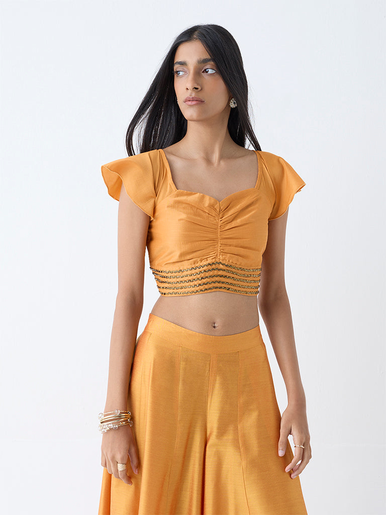 Vark Mustard Ruched Detailed Embellished Ethnic Top