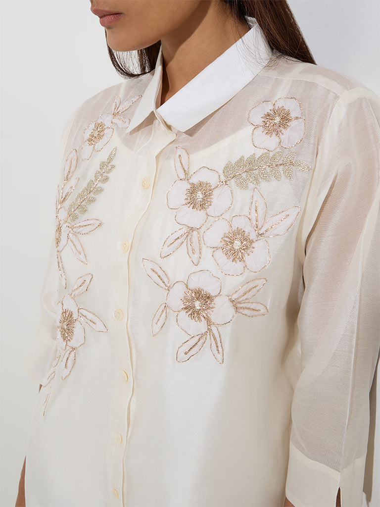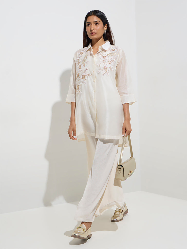 Vark Off-White Floral Embellished High-Low Kurti with Inner