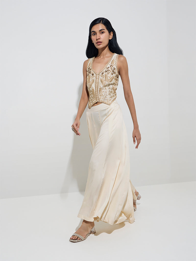 Vark Off-White High-Rise Palazzos
