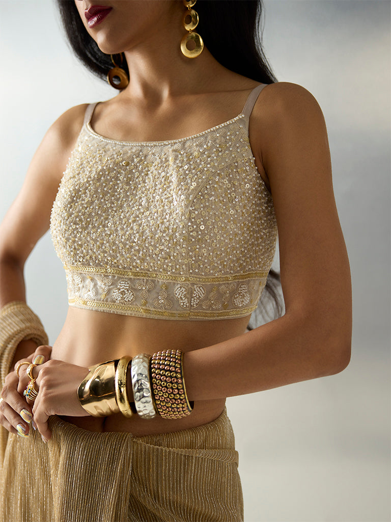 Be the first to review “Vark Off-White Sequins Embellished Blouse”