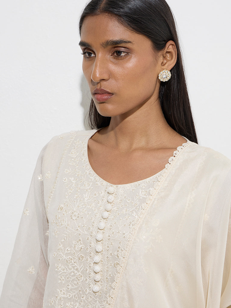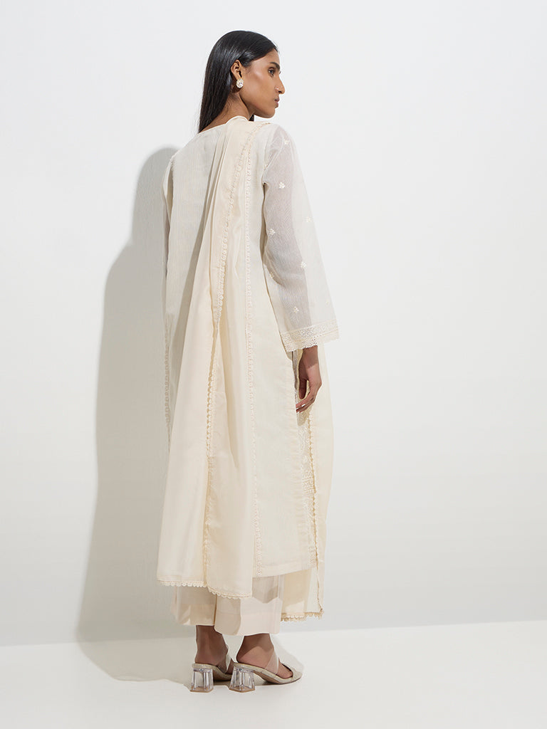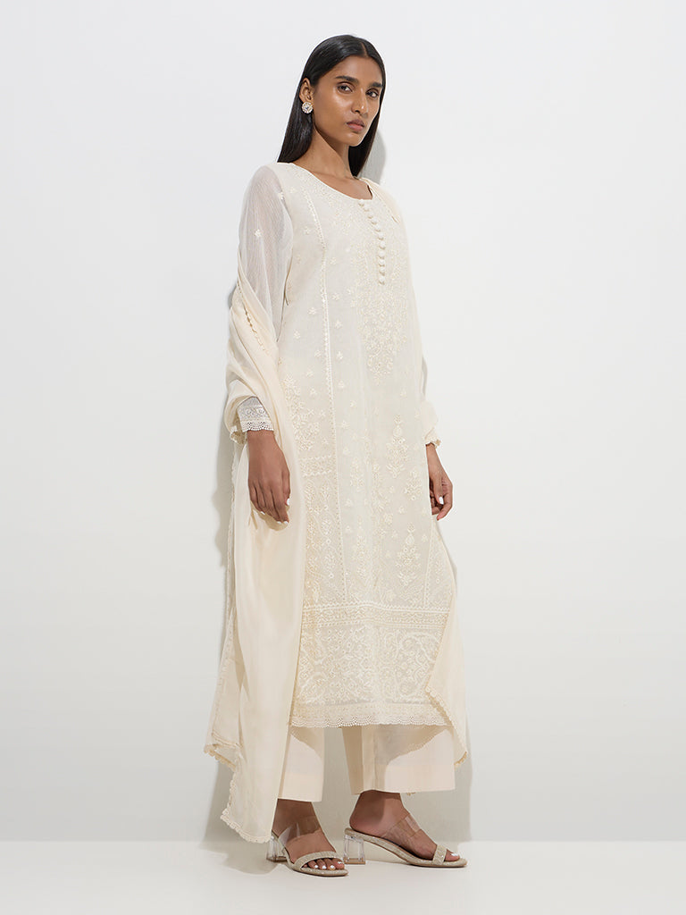 Vark Off-White Straight Kurta. Palazzos and Dupatta Set