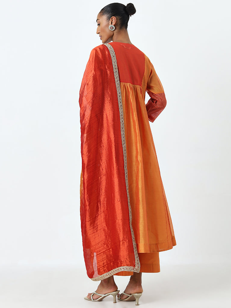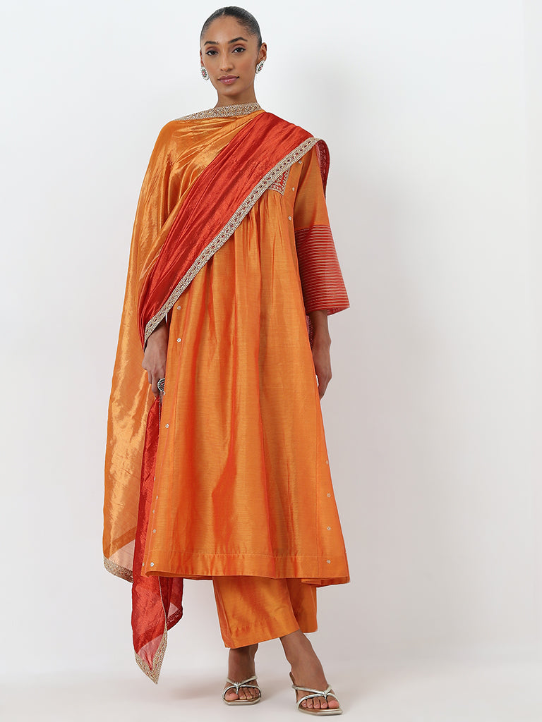 Vark Orange Zari Embroidered Kurta. Pants and Dupatta Set