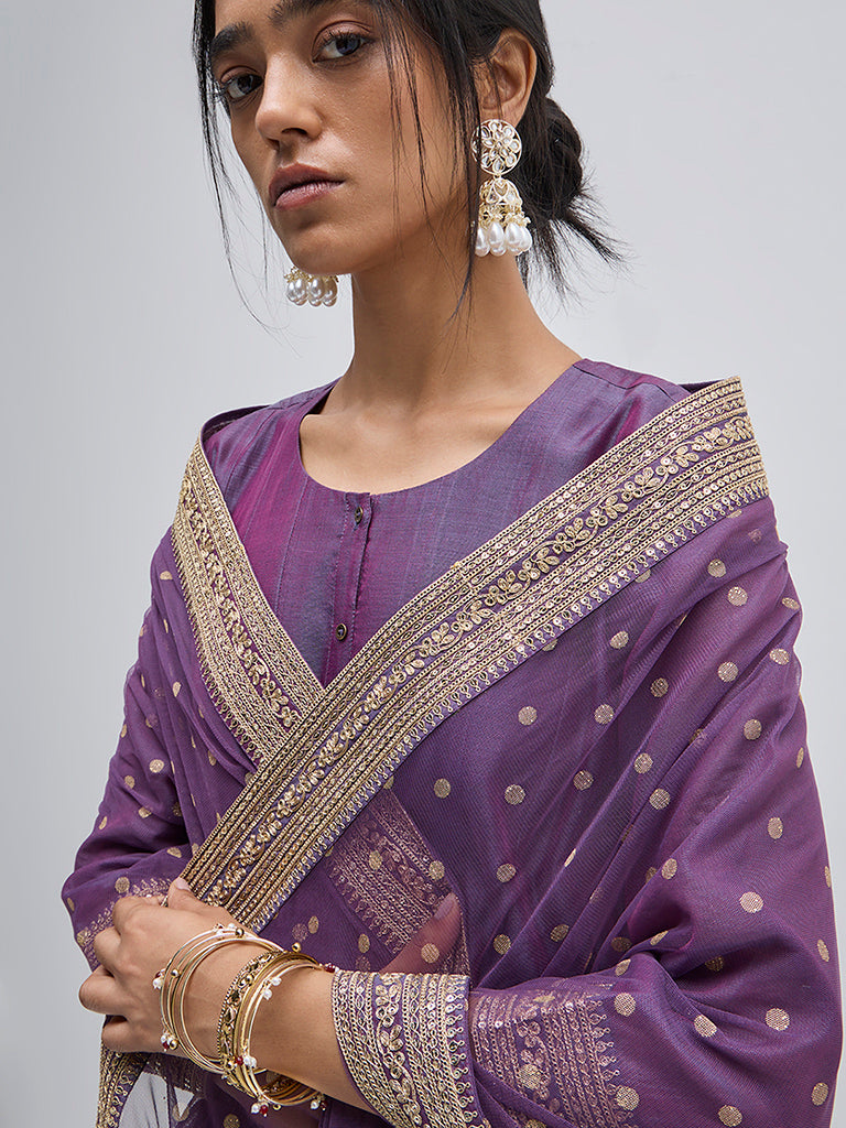 Vark Purple Embellished Kurta. Pants and Dupatta Set