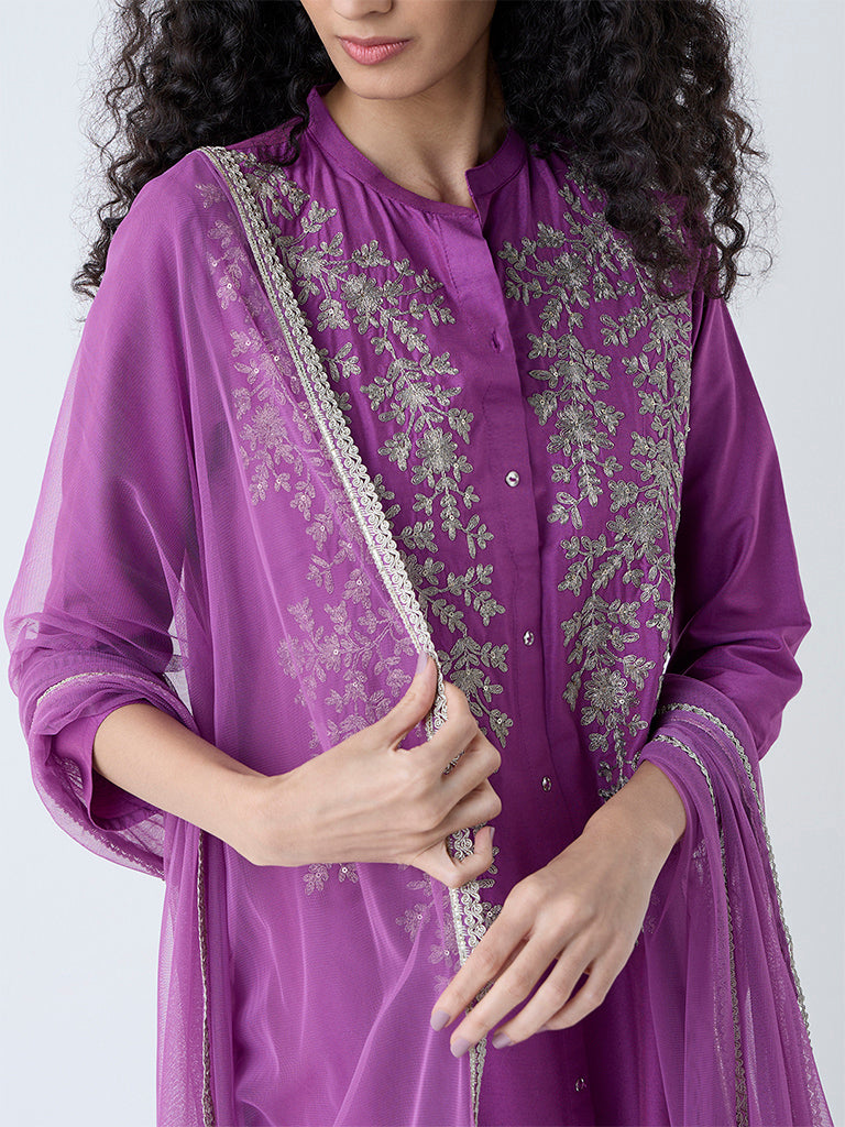 Vark Purple Embroidered A-Line Ethnic Set
