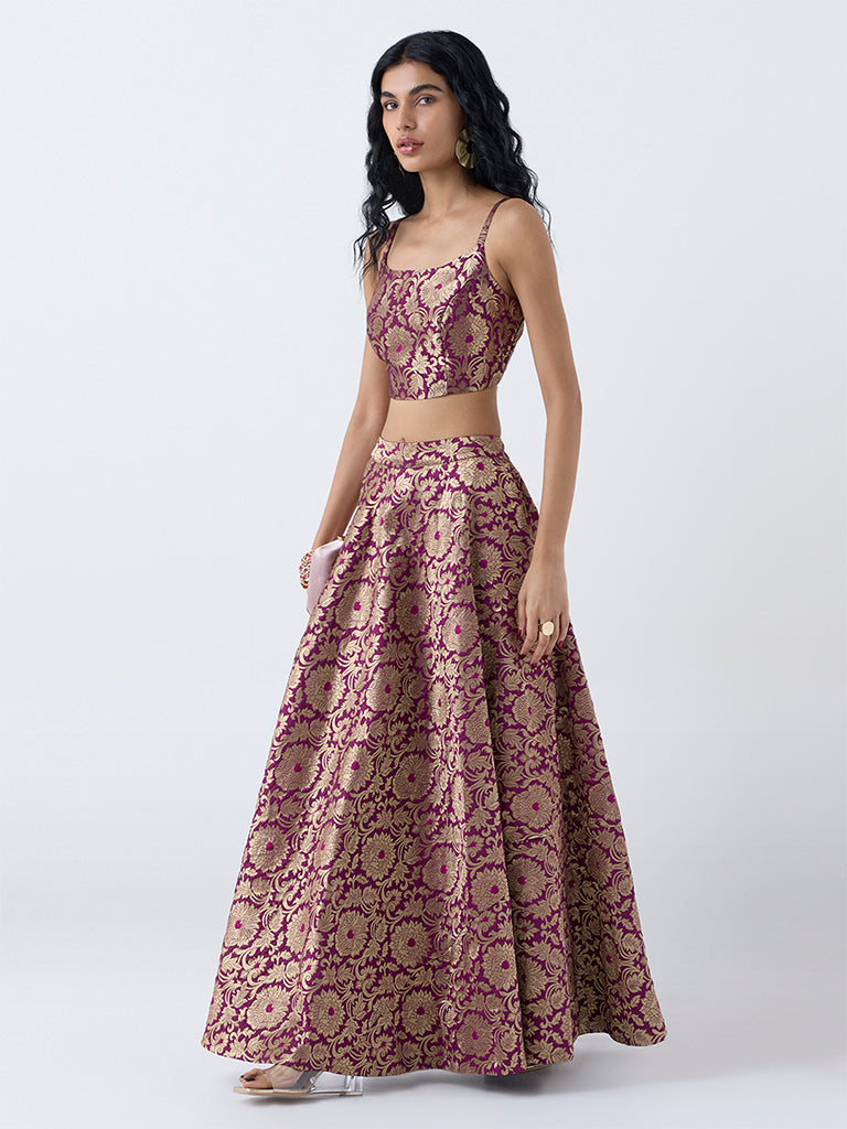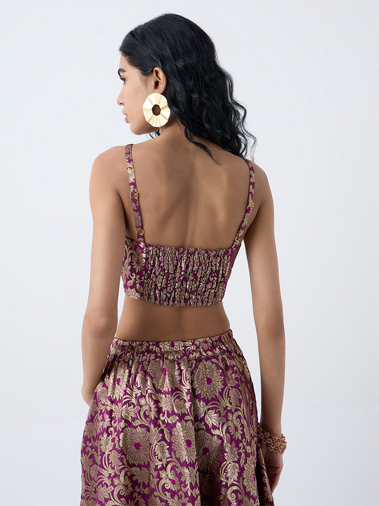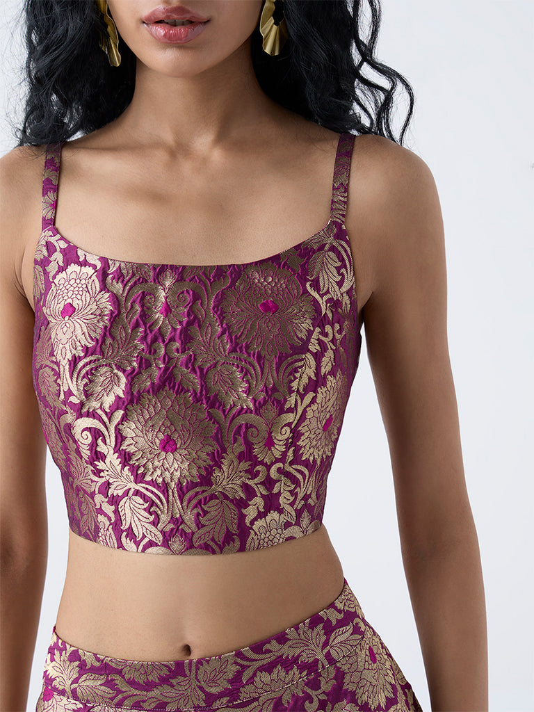 This purple top from Vark features a square neck. sleeveless cut and a smocked back for a flexible fit. Decorated with vibrant floral patterns. it brings a festive charm to the silhouette. Woven from high-quality fabric. it ensures comfort without compromising on style.