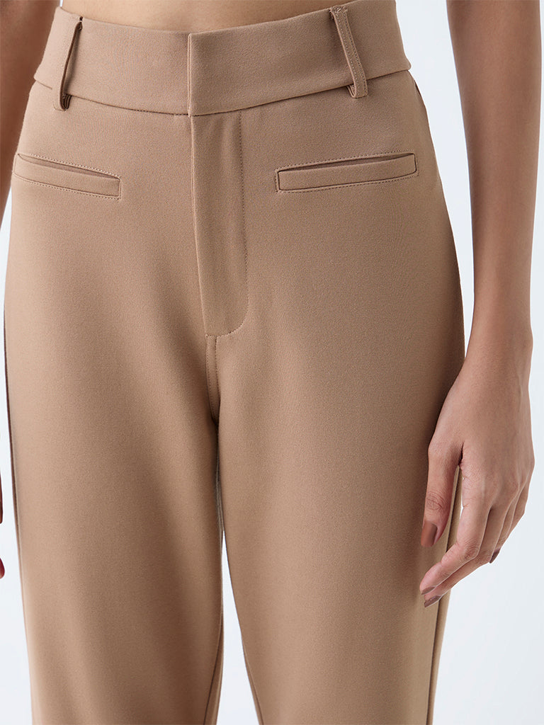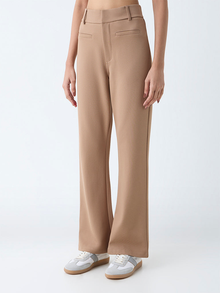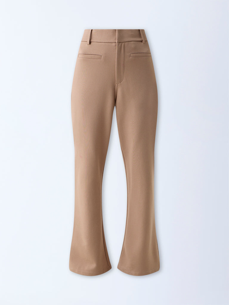 Wardrobe Beige Bootcut High-Rise Trousers