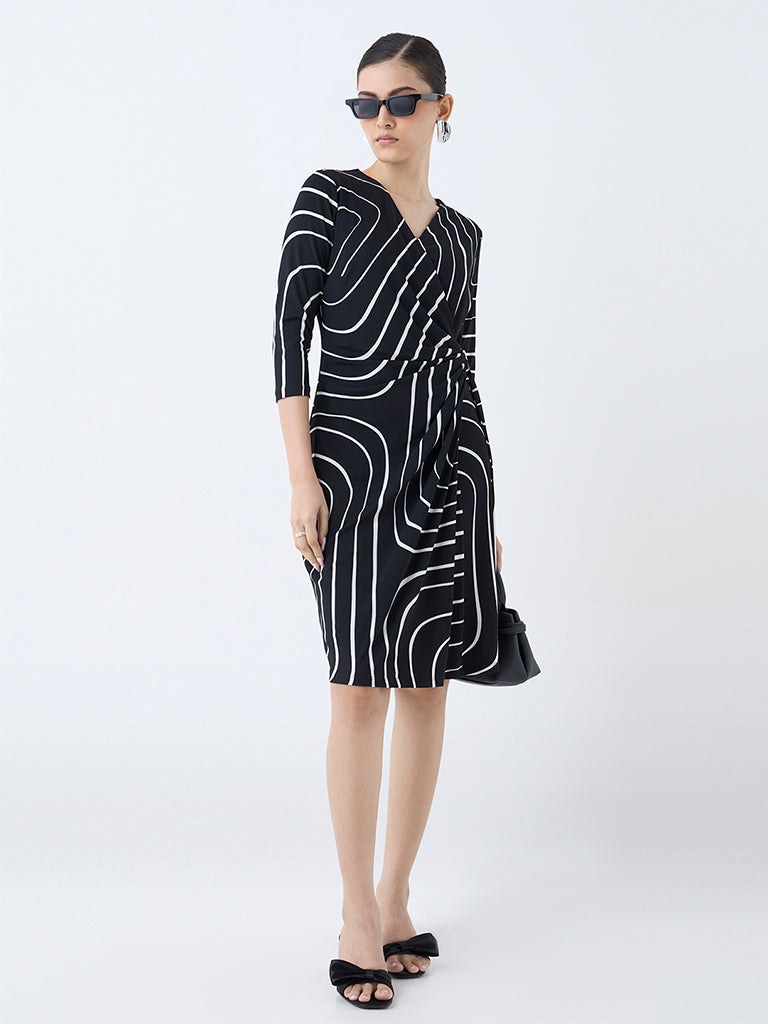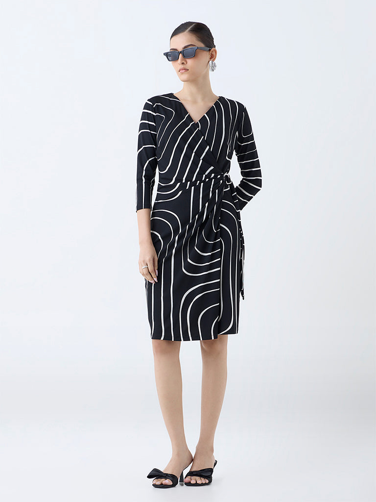 Wardrobe Black Abstract Design Wrap-Style Dress