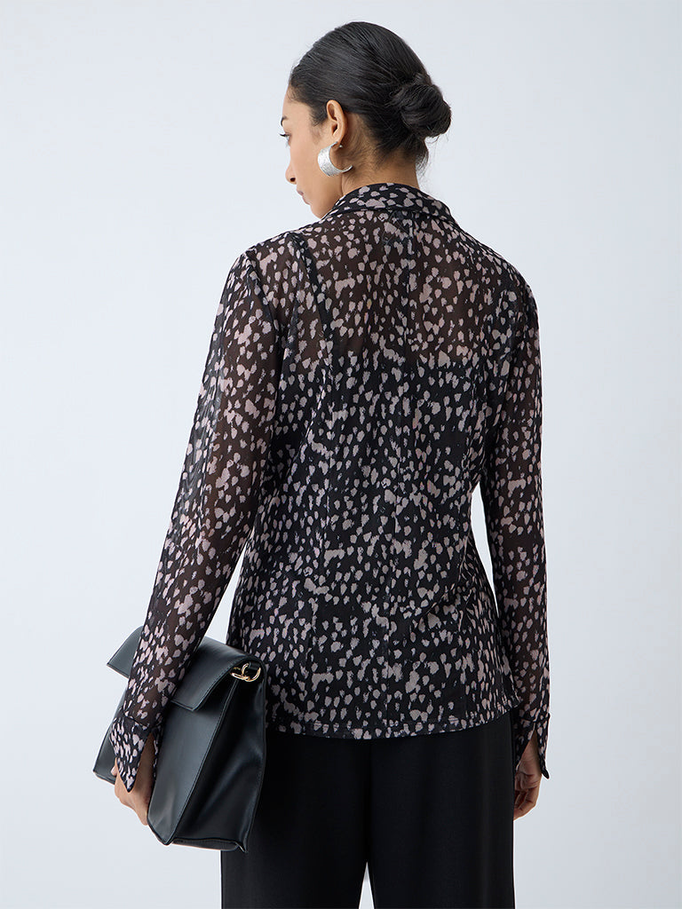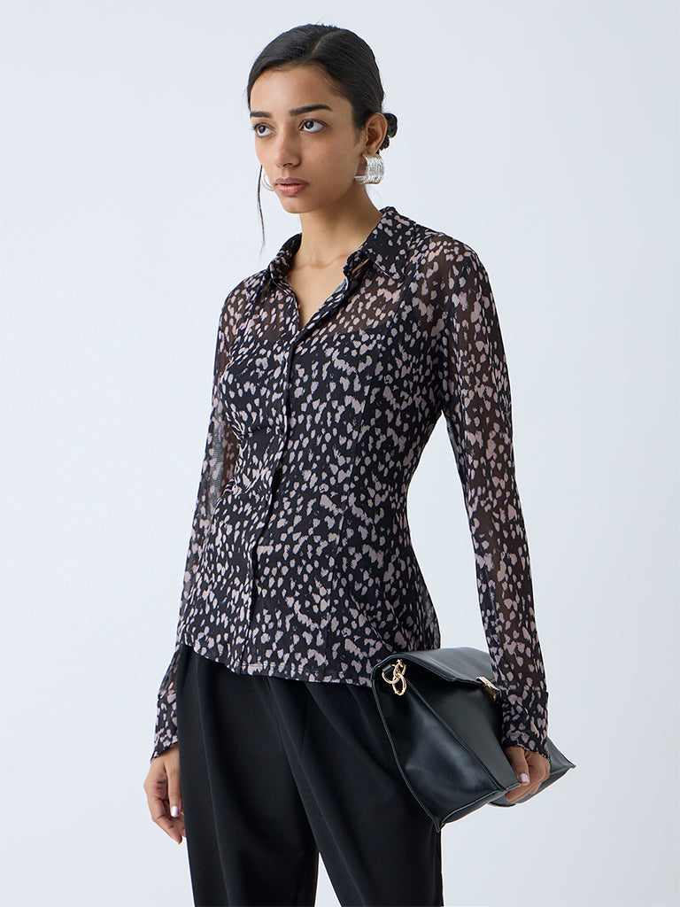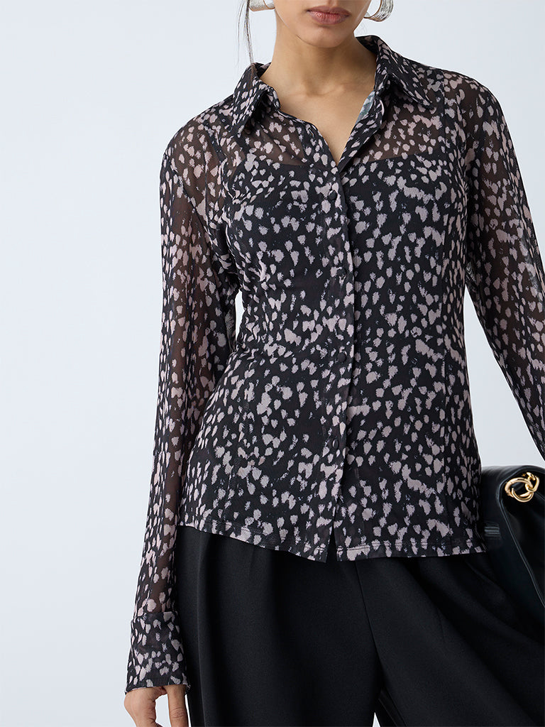 Wardrobe Black Abstract Printed Mesh Shirt with Inner