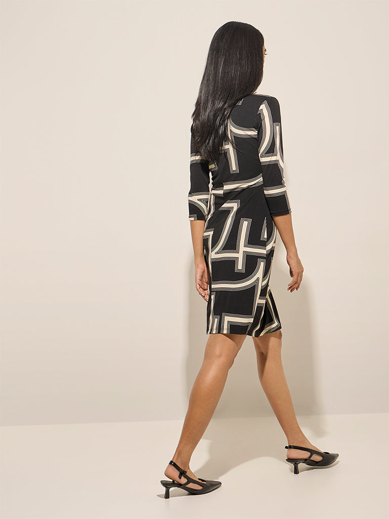 Wardrobe Black Abstract Printed Wrap-Style Dress