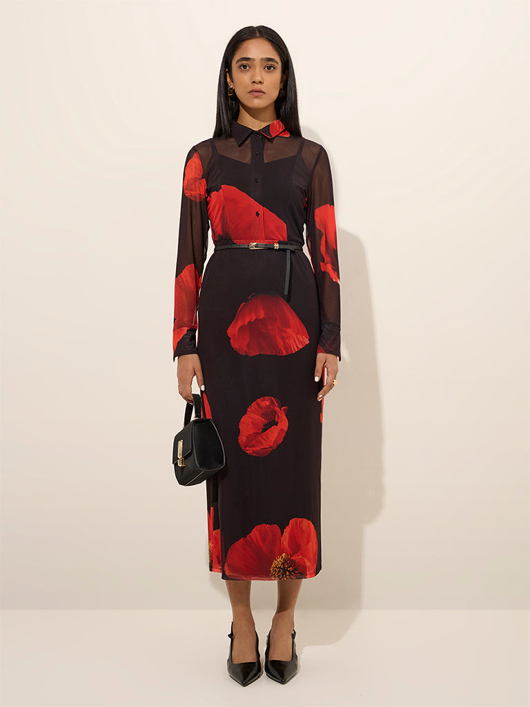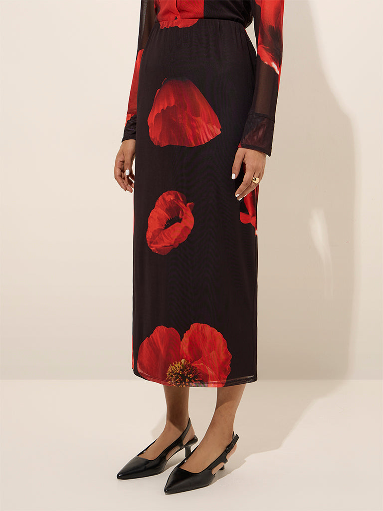 Wardrobe Black Floral Printed High-Rise Mesh Skirt