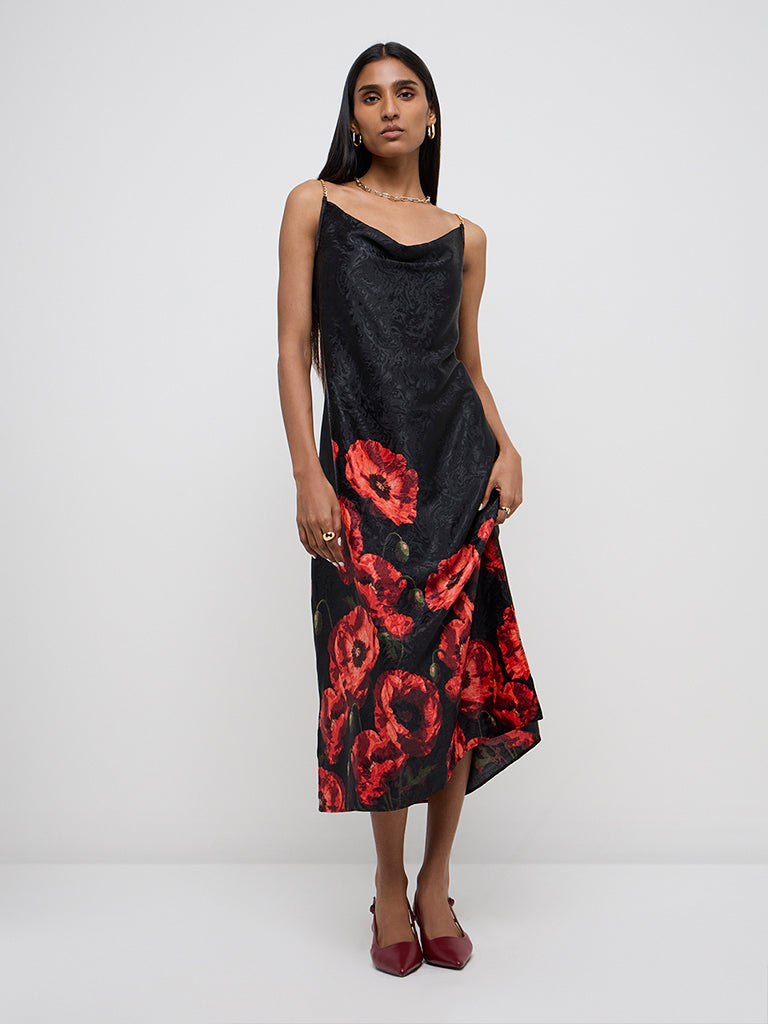 Be the first to review “Wardrobe Black Floral Printed Slip Dress”