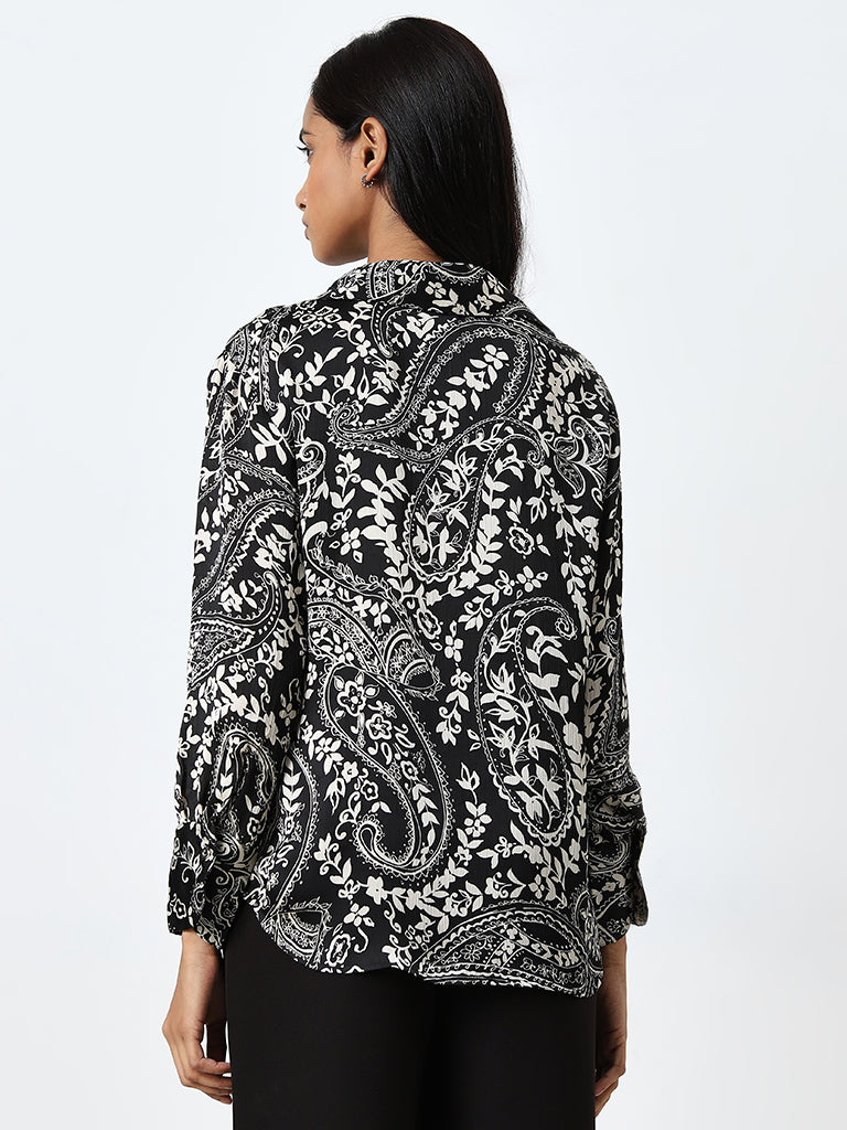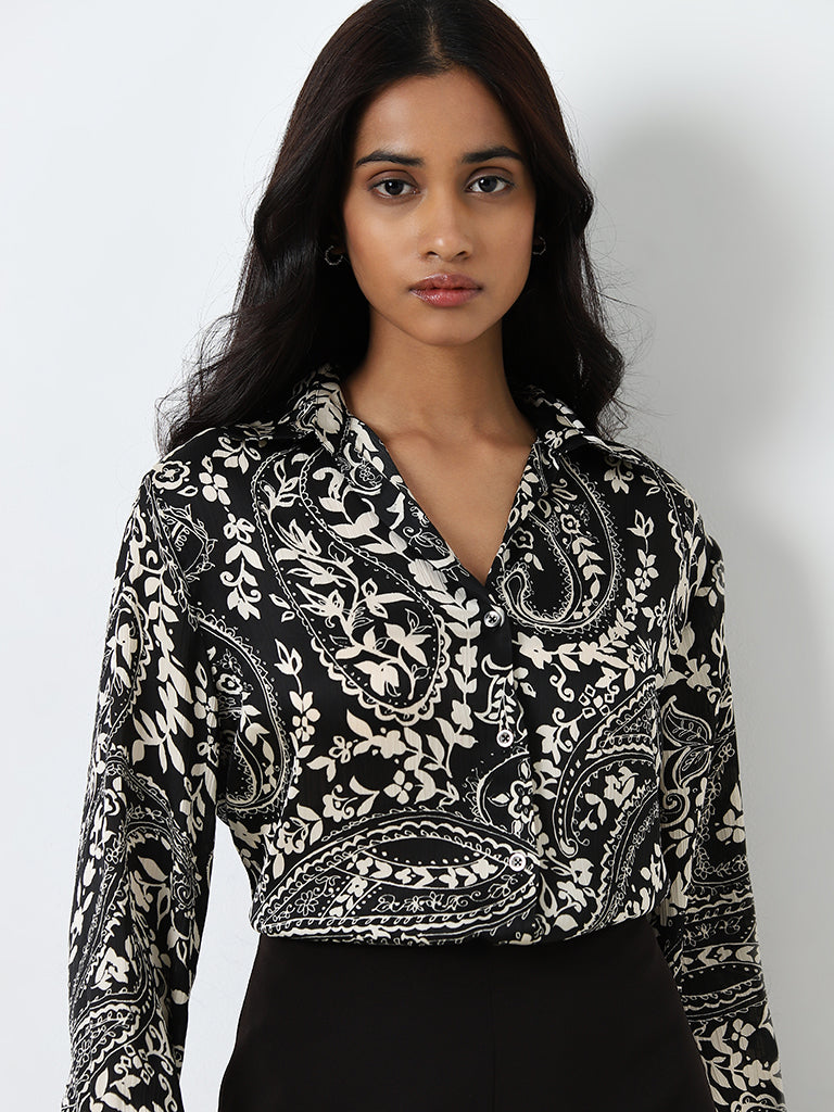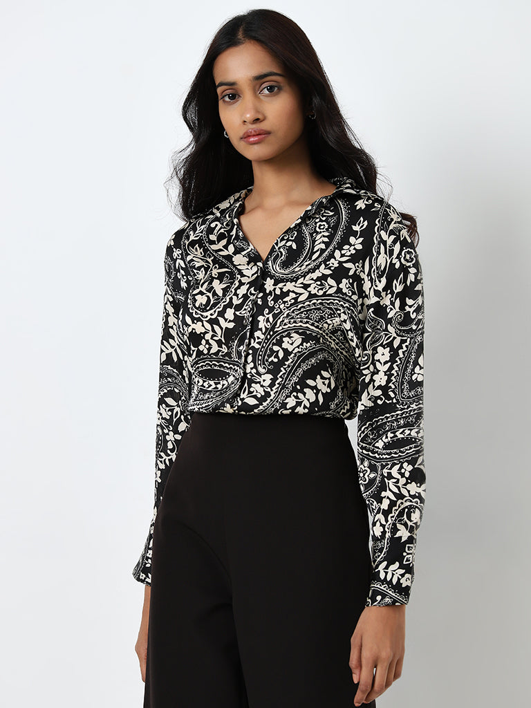 Be the first to review “Wardrobe Black Leaf Printed Shirt”