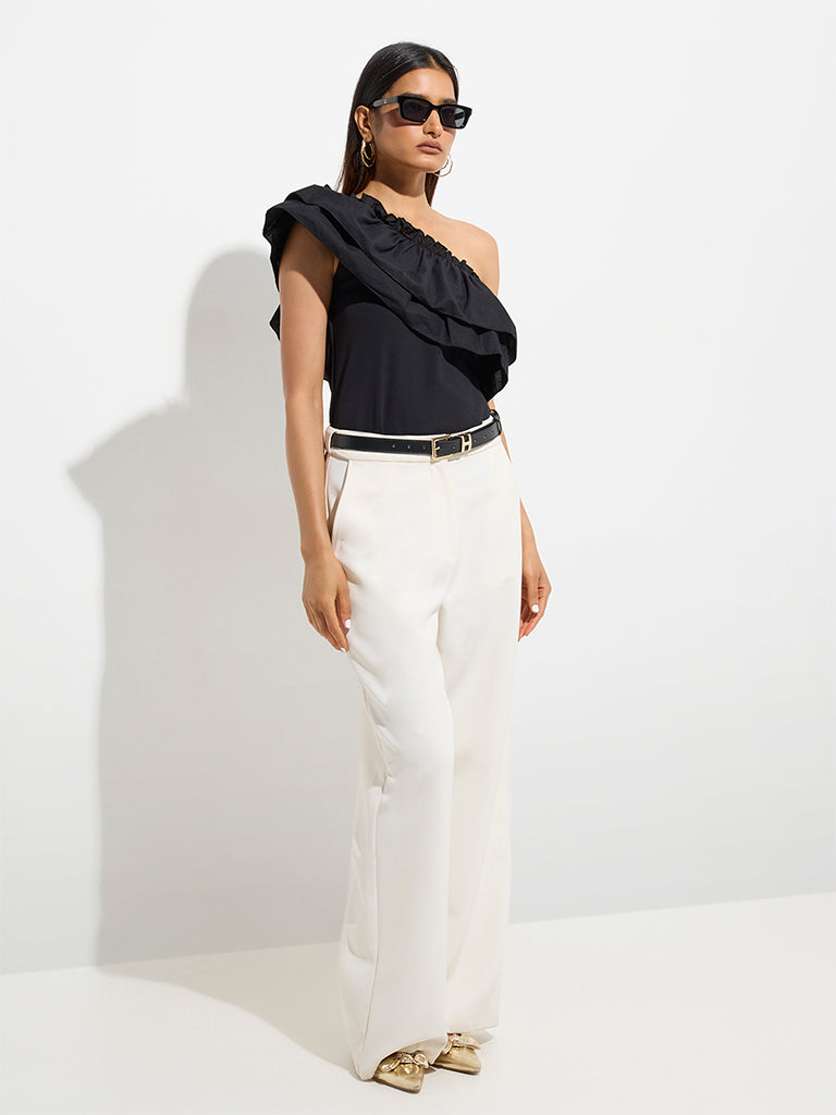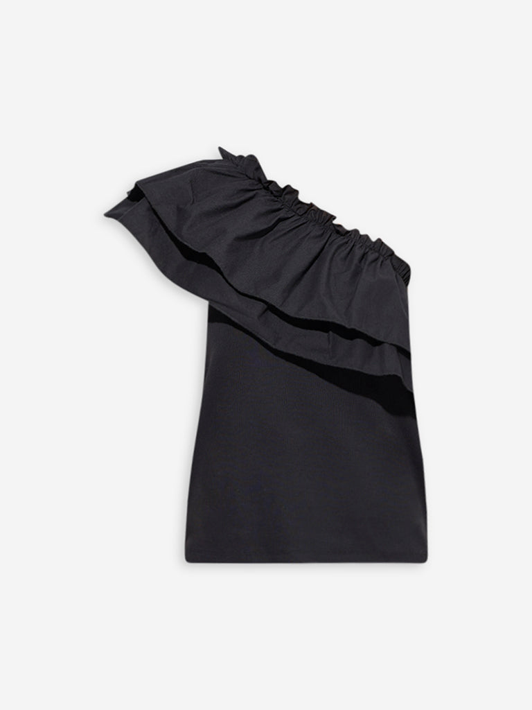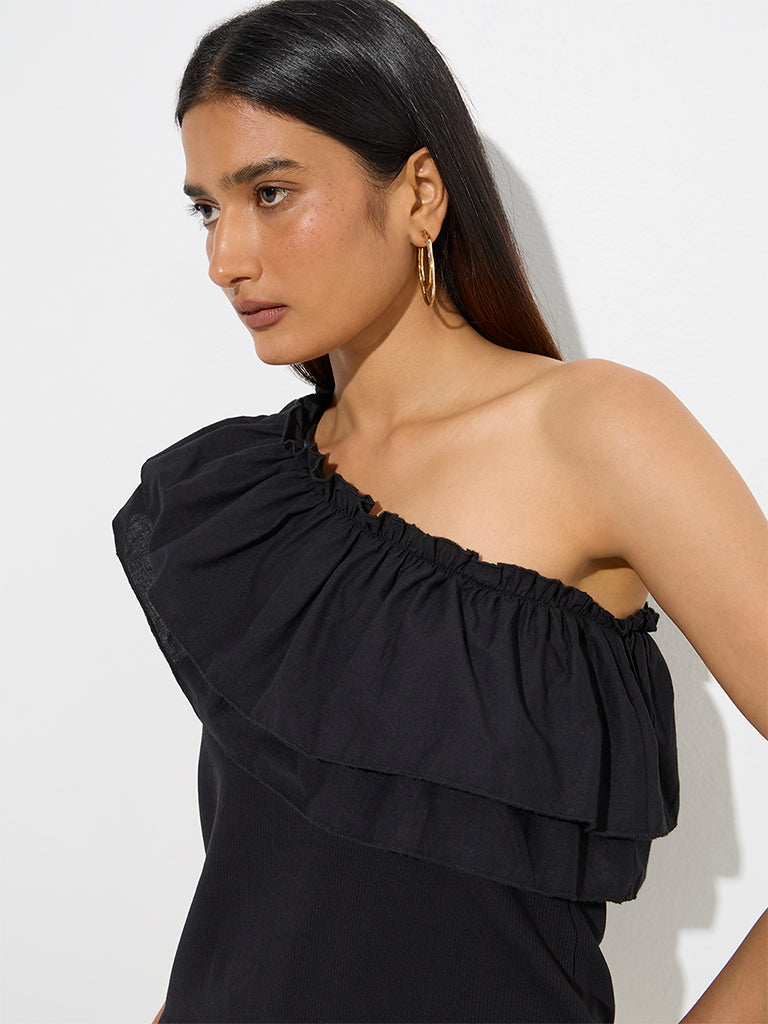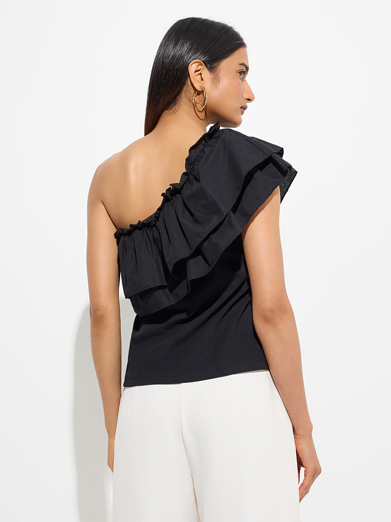 Wardrobe Black Ruffle One-Shoulder Cotton-Blend Top