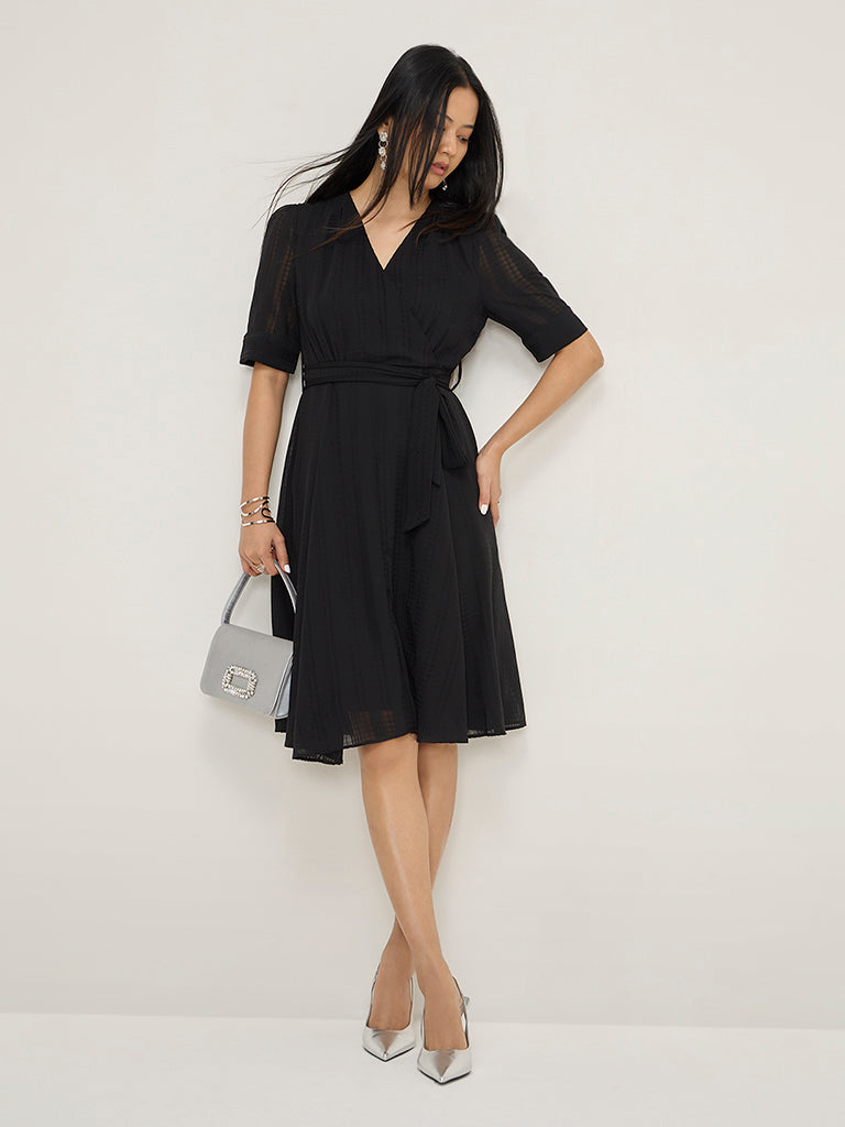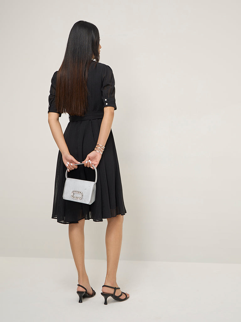 Wardrobe Black Seersucker A-Line Dress with Belt
