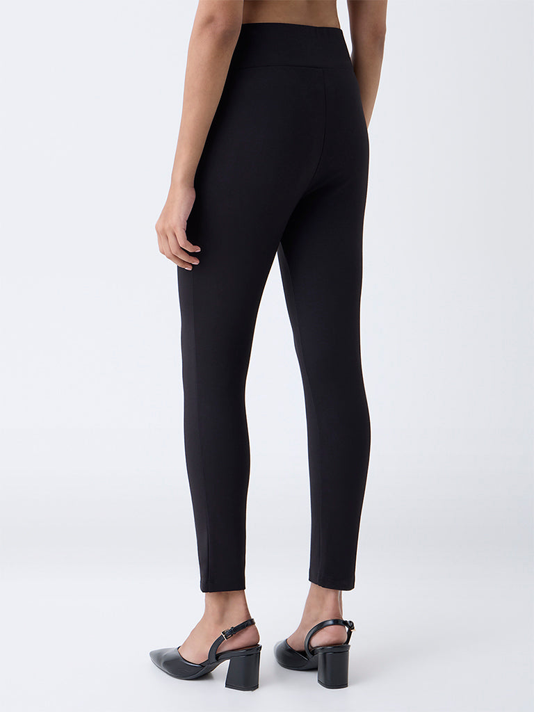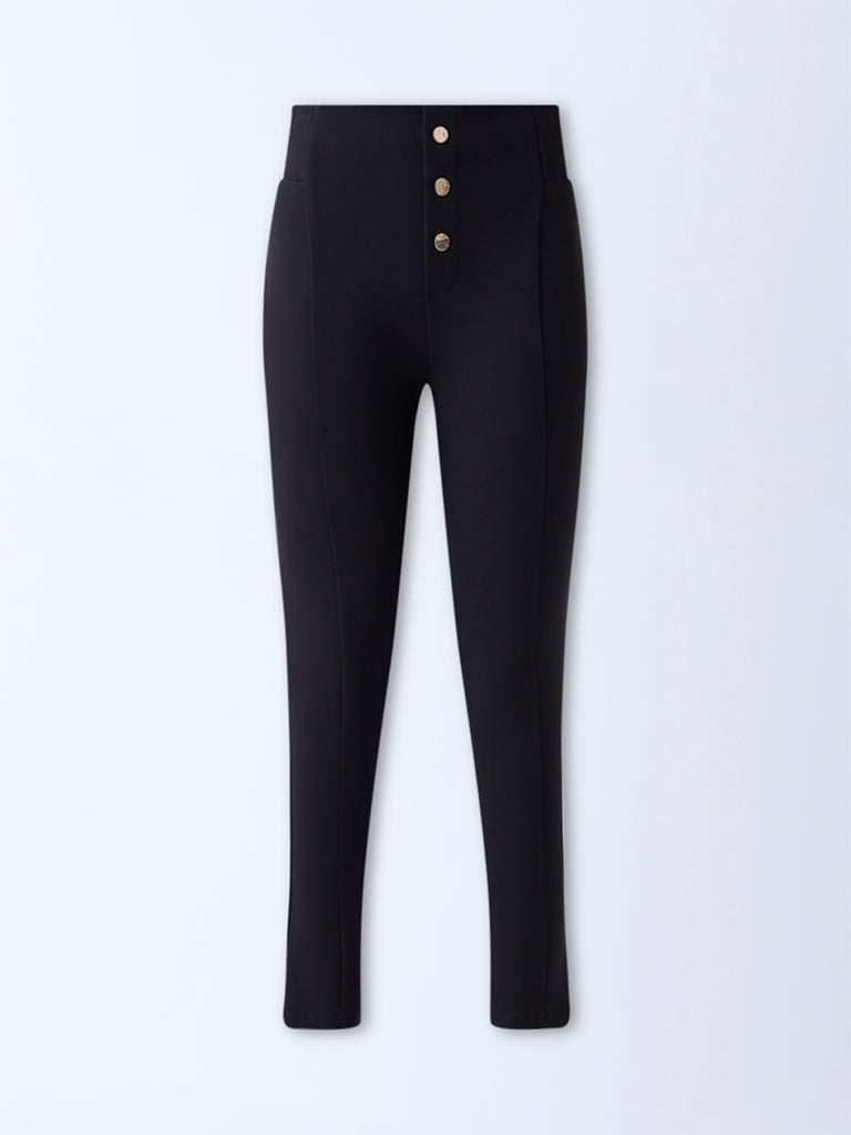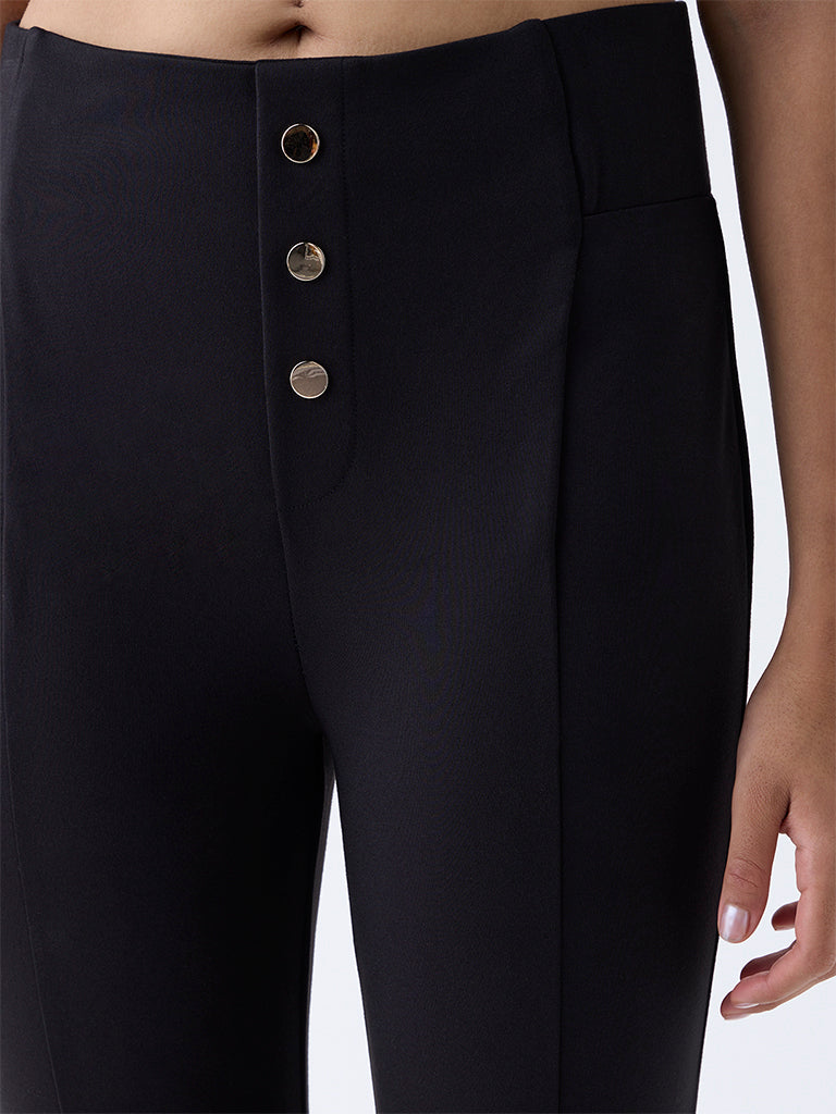 Wardrobe Black Solid Button-Detailed High-Rise Trousers