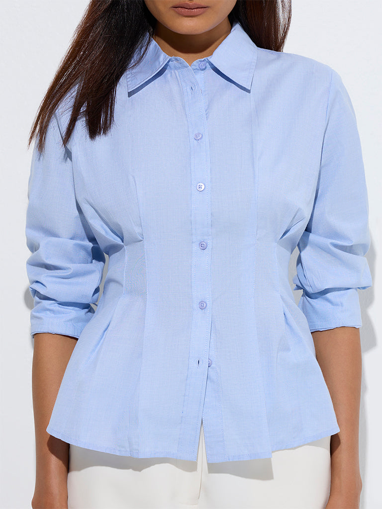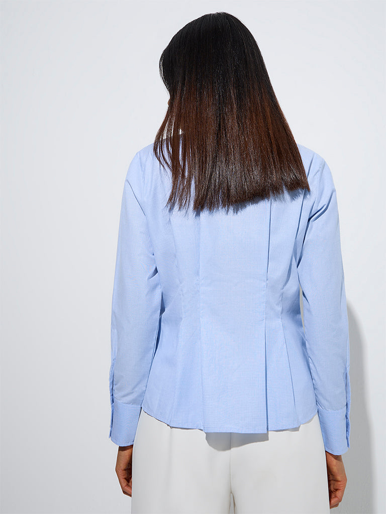 Wardrobe Blue Pintuck Design Cotton-Blend Shirt