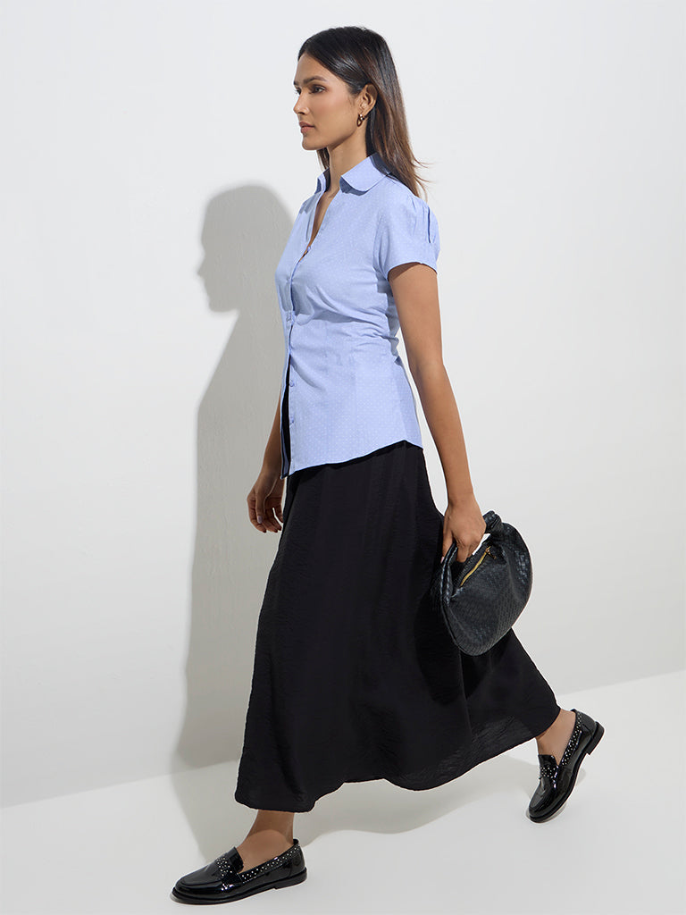 Wardrobe Blue Polka Dotted Cotton-Blend Shirt