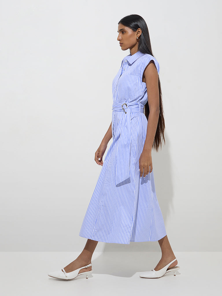 Wardrobe Blue Stripe Patterned Cotton Shirt Dress with Belt