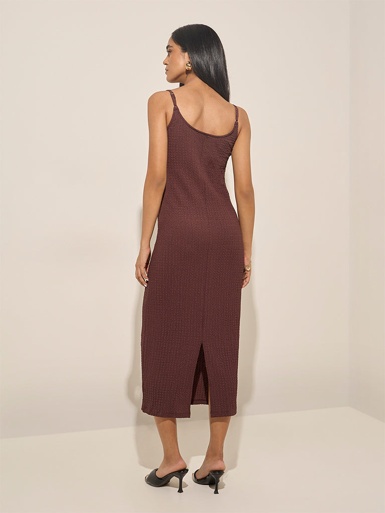 Wardrobe Brown Crinkle-Textured Bodycon Dress