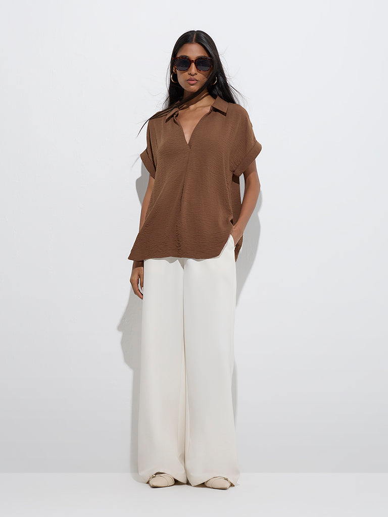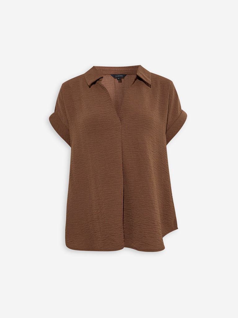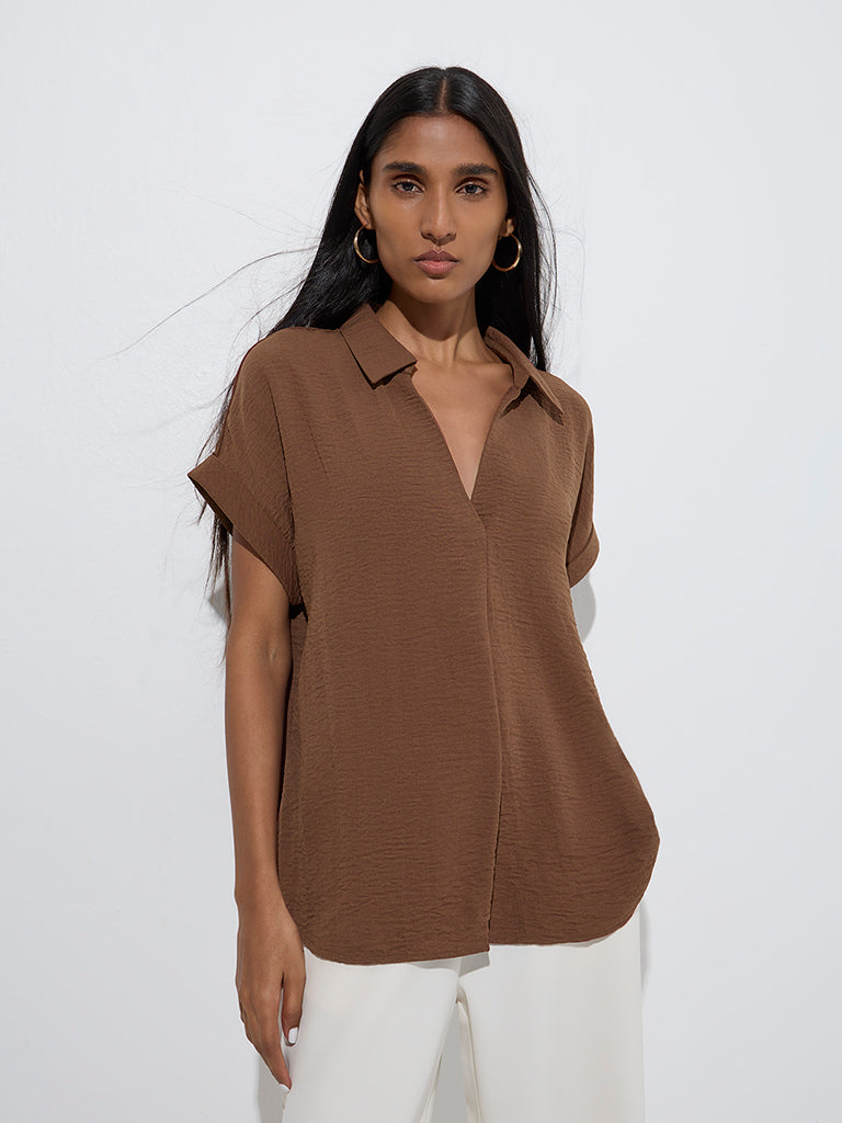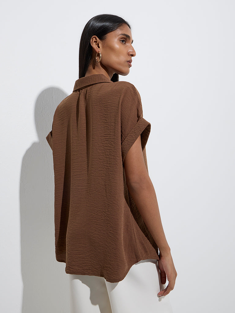 Wardrobe Brown Crinkle-Textured Top