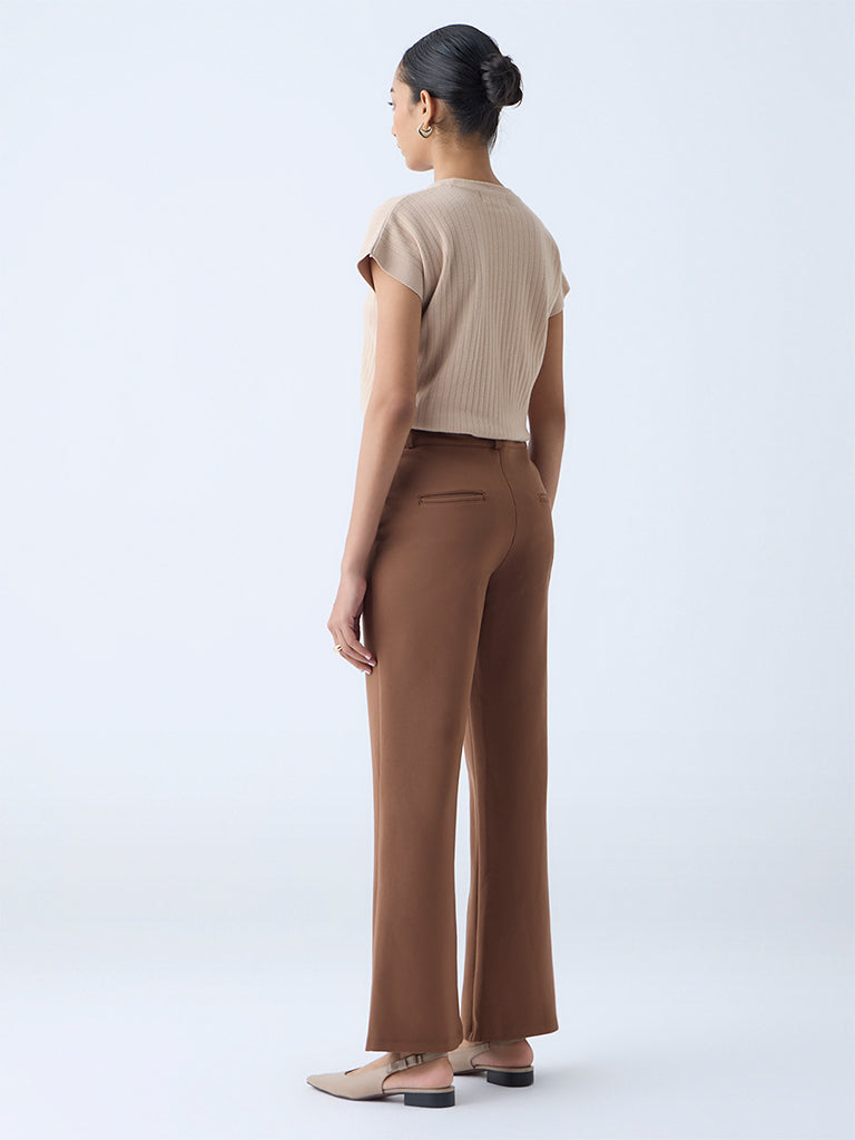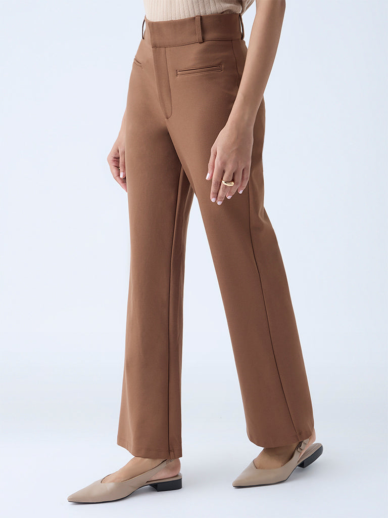 Wardrobe Brown Flared High-Rise Trousers
