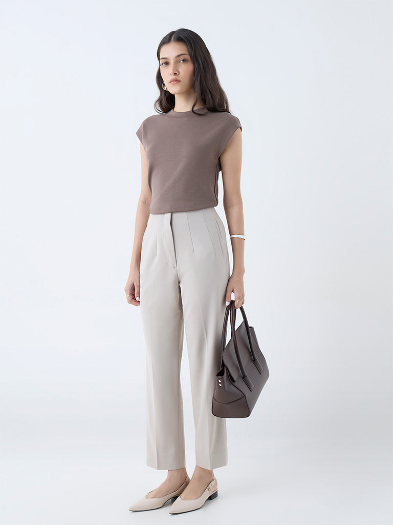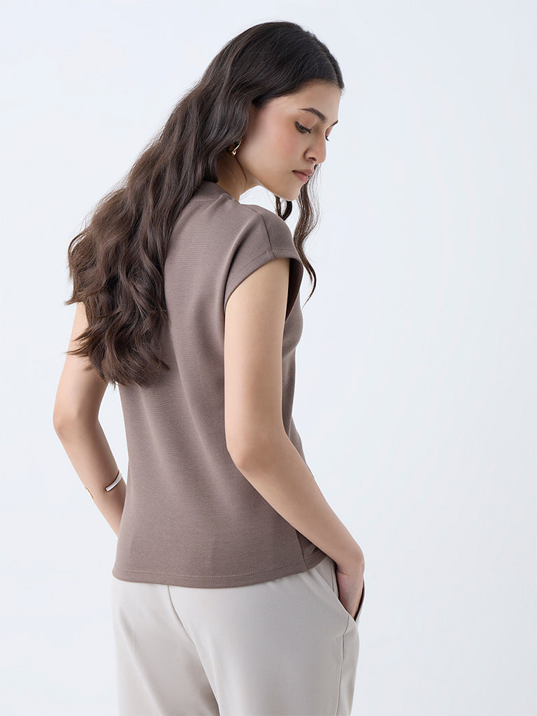 Wardrobe Brown Solid T-Shirt