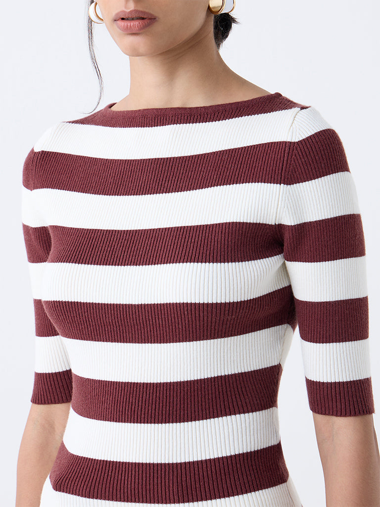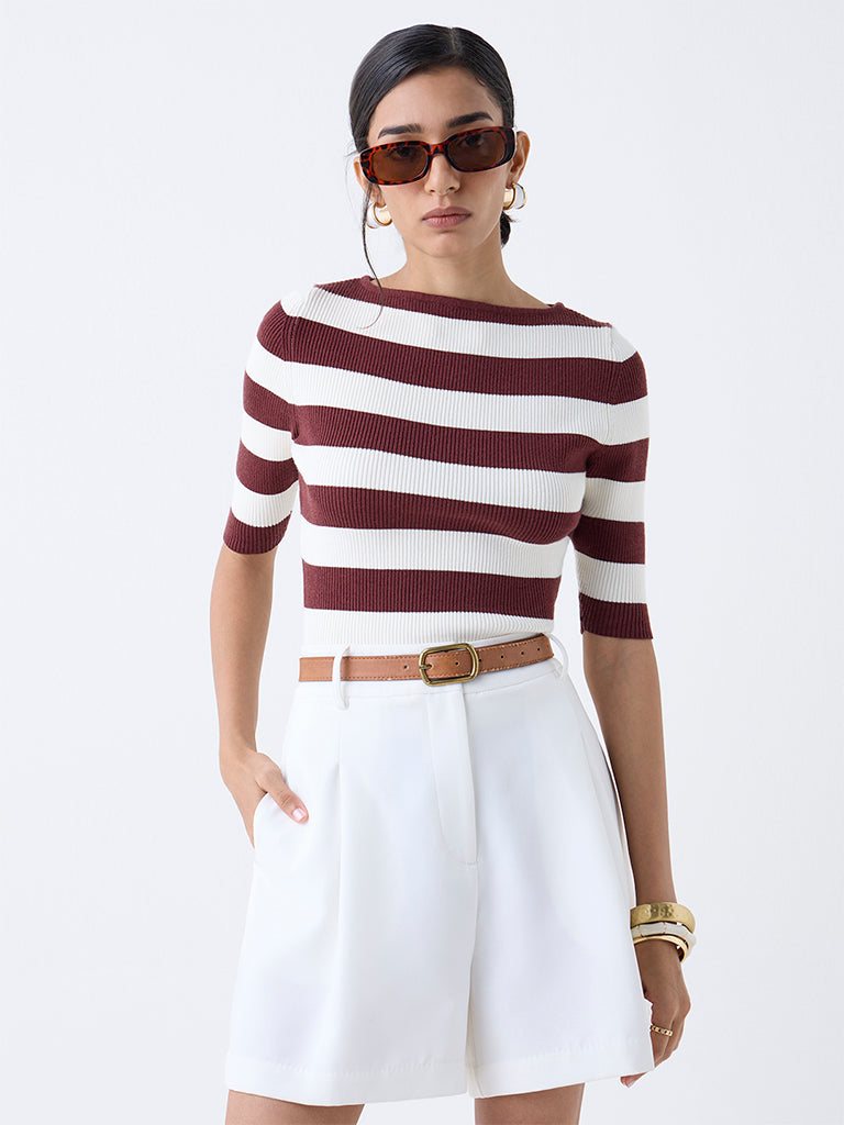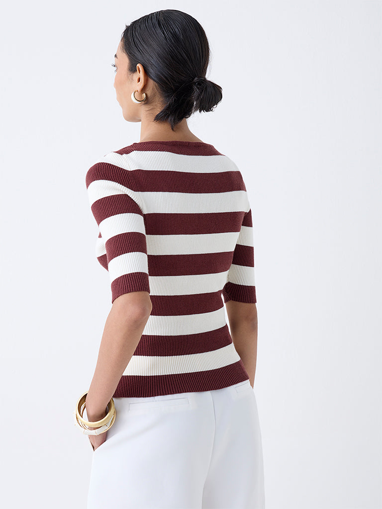 Be the first to review “Wardrobe Brown Striped Ribbed T-Shirt”