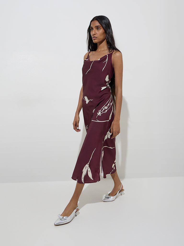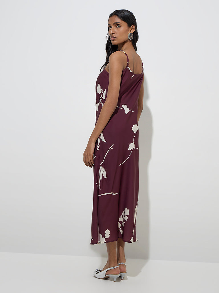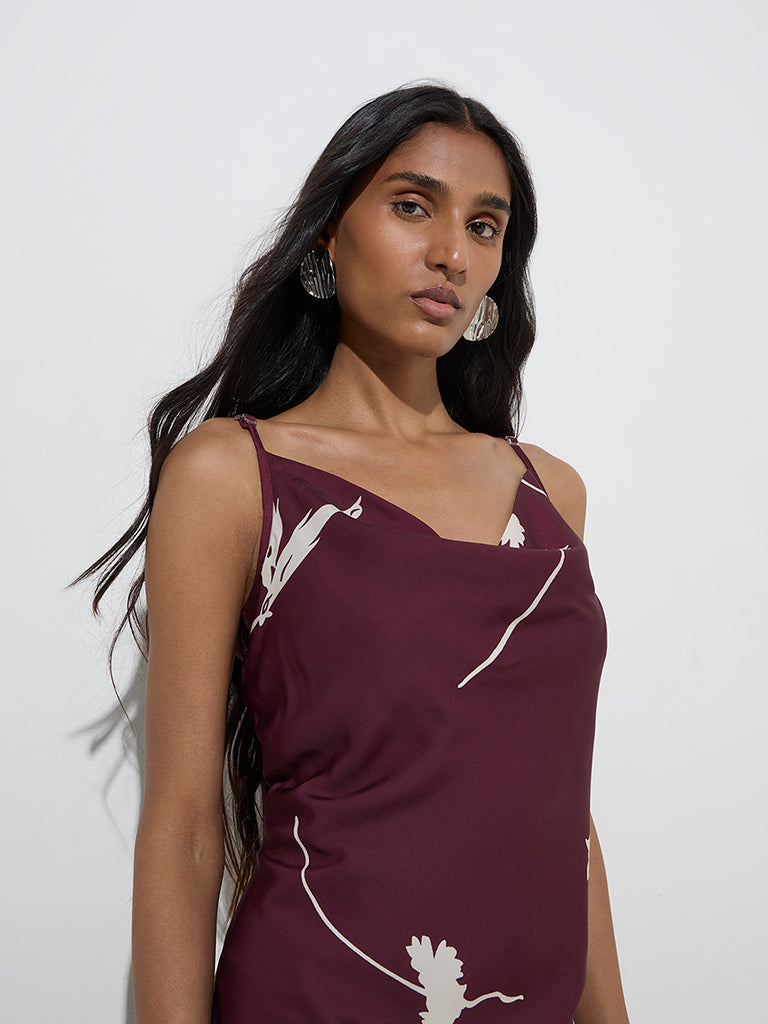 Wardrobe Burgundy Floral Printed Slip Dress