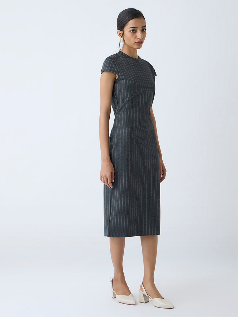 Wardrobe Dark Grey Pinstriped Straight Dress