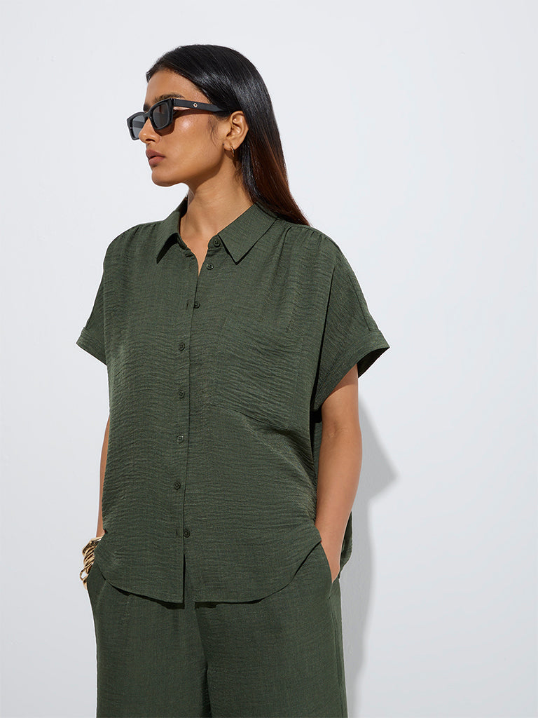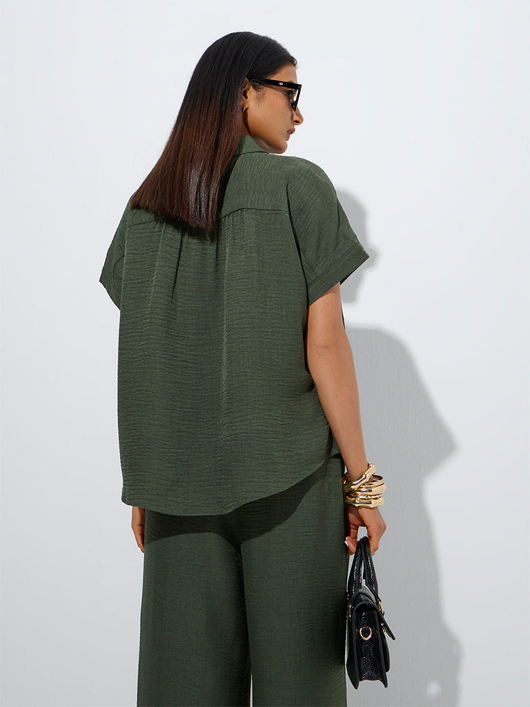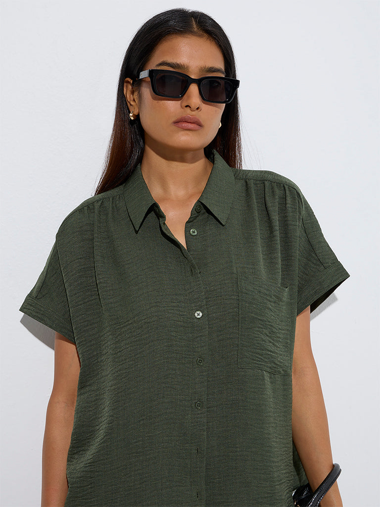 Wardrobe Dark Olive Crinkle-Textured Shirt