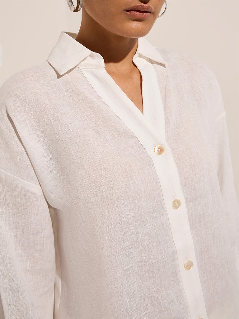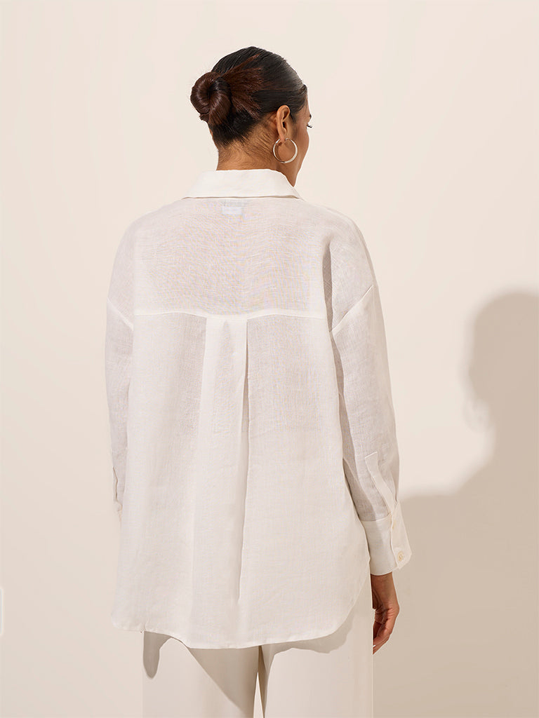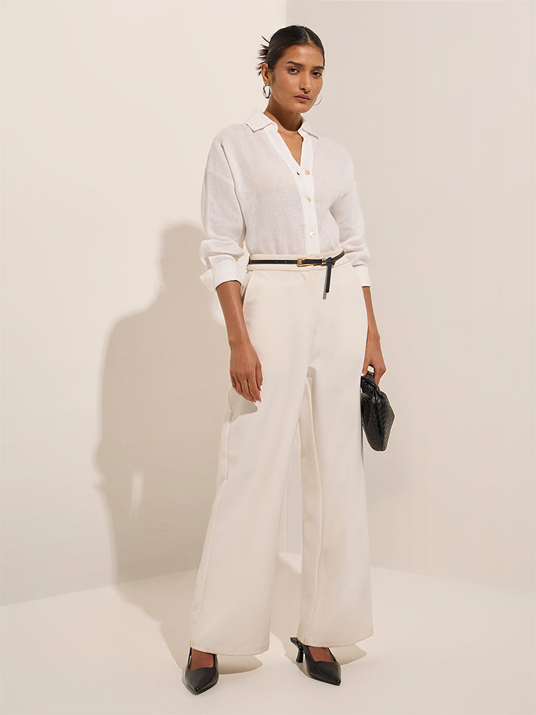 Wardrobe brings you this ivory solid shirt made with quality fabric. It is structured with a notched collar leading to a button down front and full sleeves.