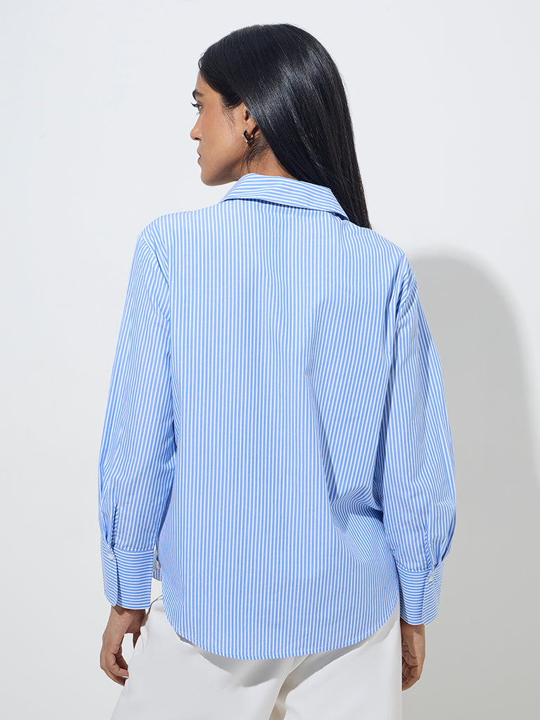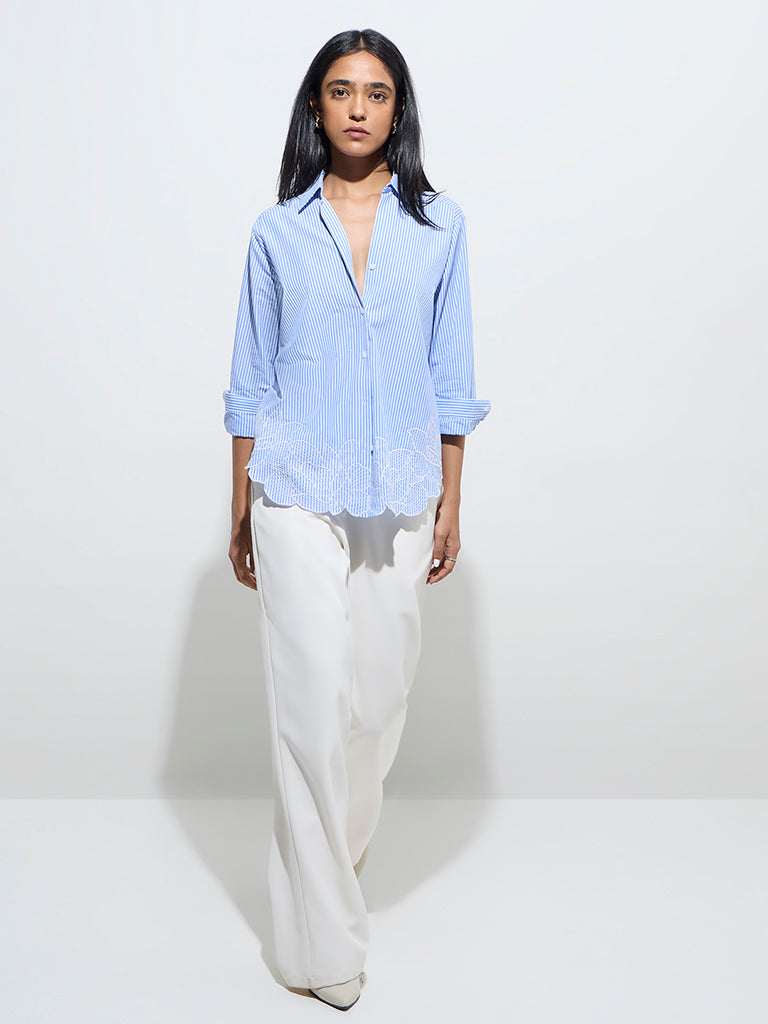 Wardrobe Light Blue Striped Floral Embroidered Shirt