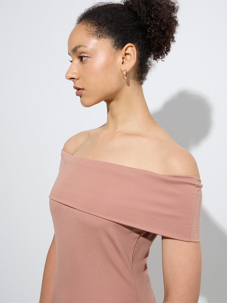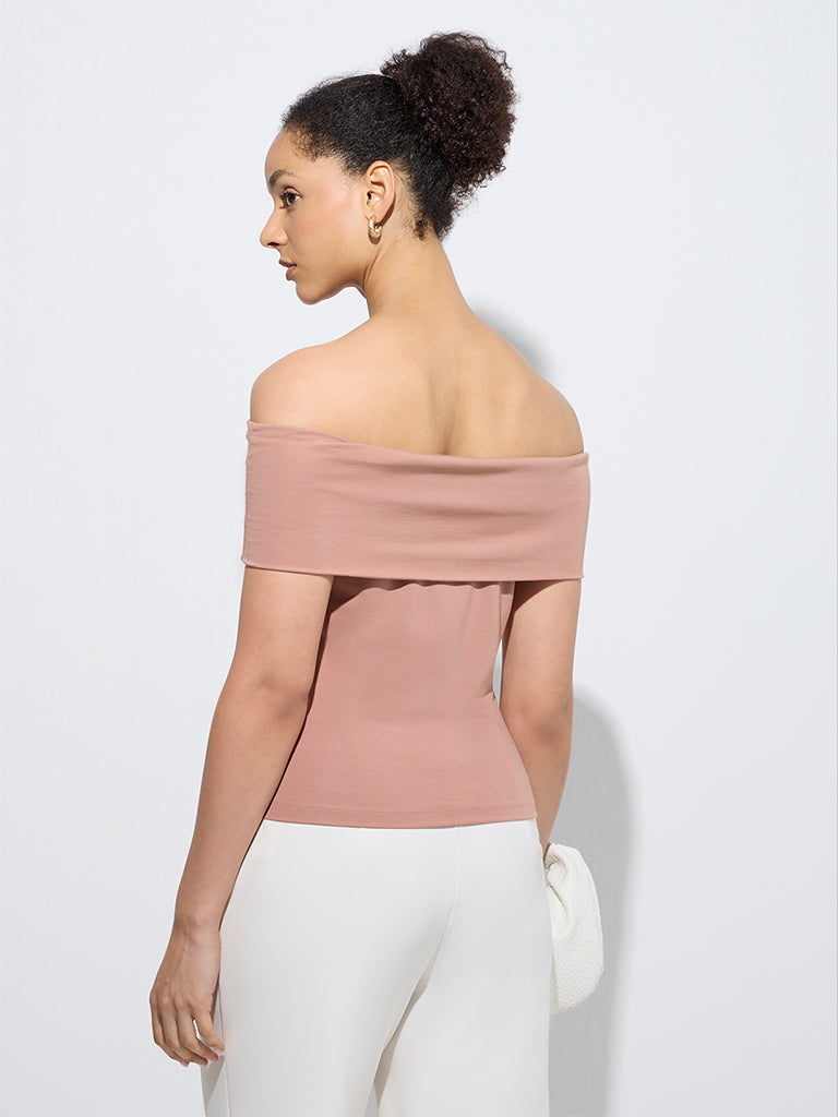 This light brown top from Wardrobe is constructed from a super-soft fabric that offers a flattering fit while keeping comfort in focus. The off-shoulder neckline adds a touch of effortless charm??perfect for pairing with tailored trousers or relaxed denim alike.