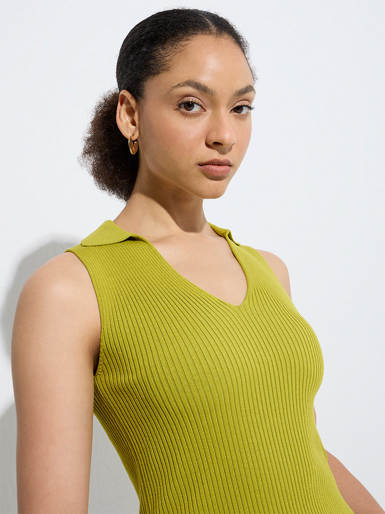 Bring a vibrant touch to your wardrobe with this lime top from Wardrobe. Featuring a V-neck collar and sleeveless cut. it’s crafted from a ribbed-textured fabric for a sumptuous feel.