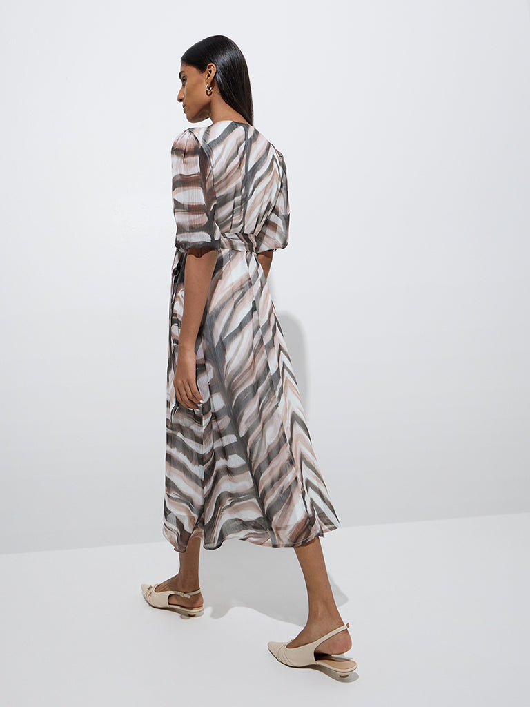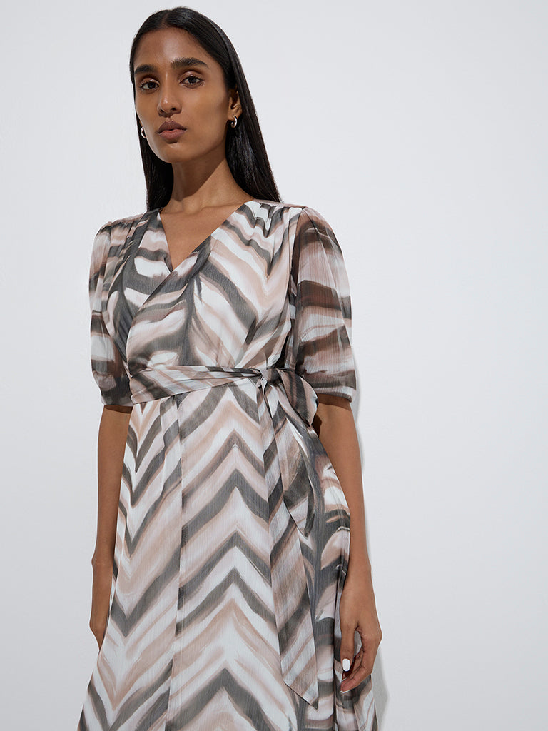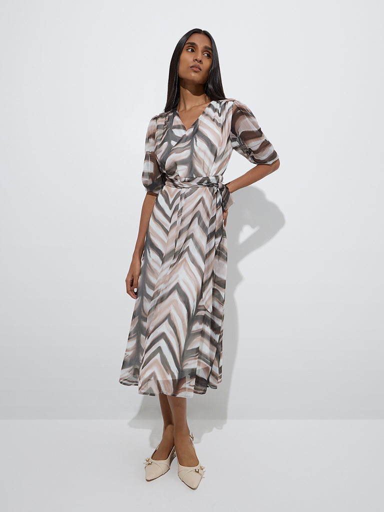 Wardrobe Multicolor Chevron Printed A-Line Dress with Belt