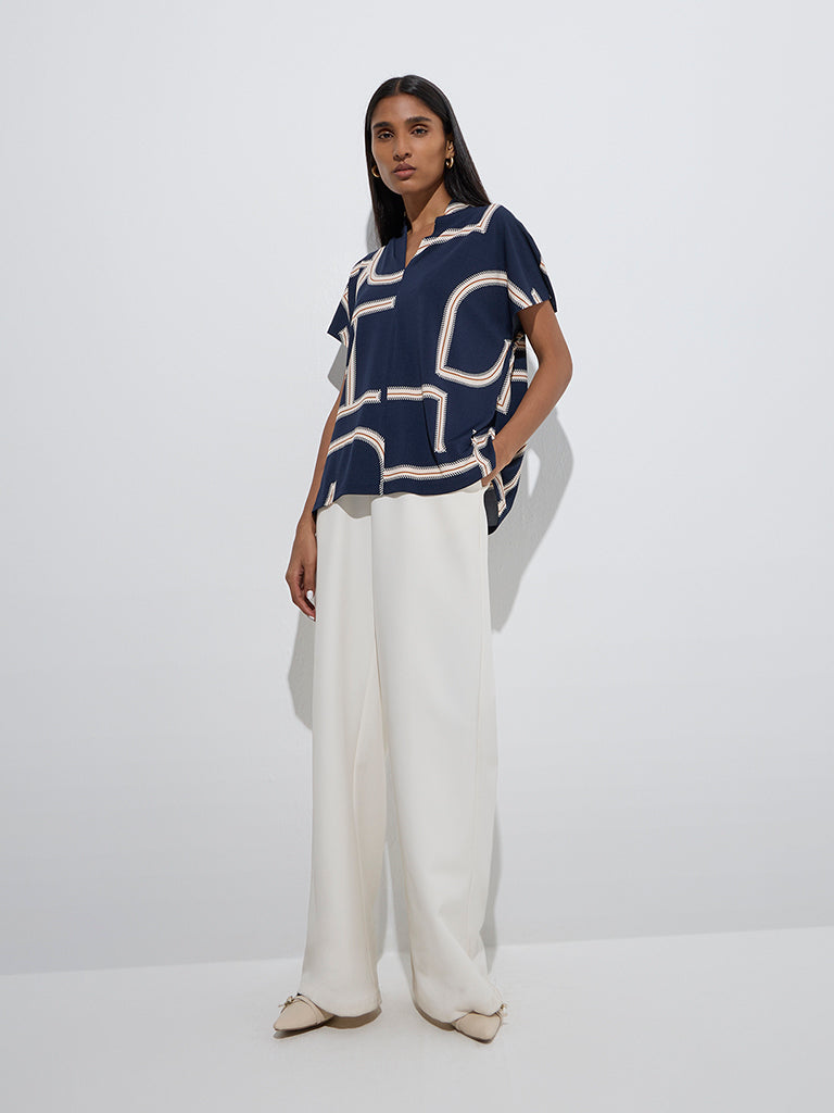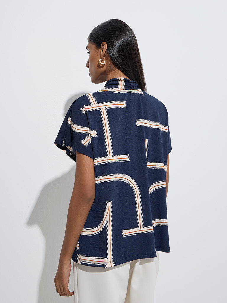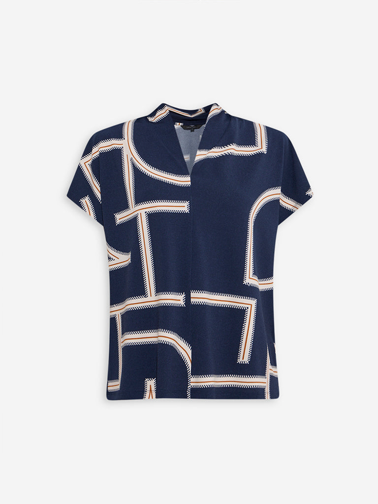 Wardrobe Navy Abstract Printed Blouse