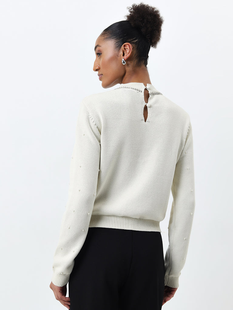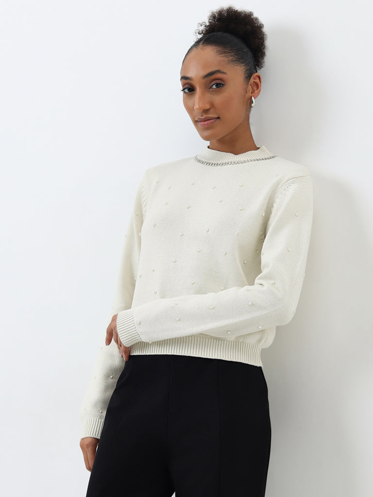 Wardrobe Off-White Embellished Cotton Sweater
