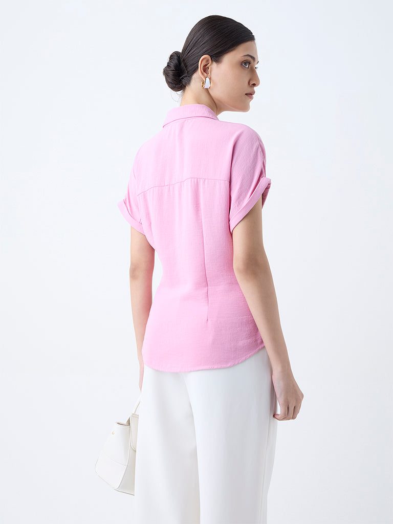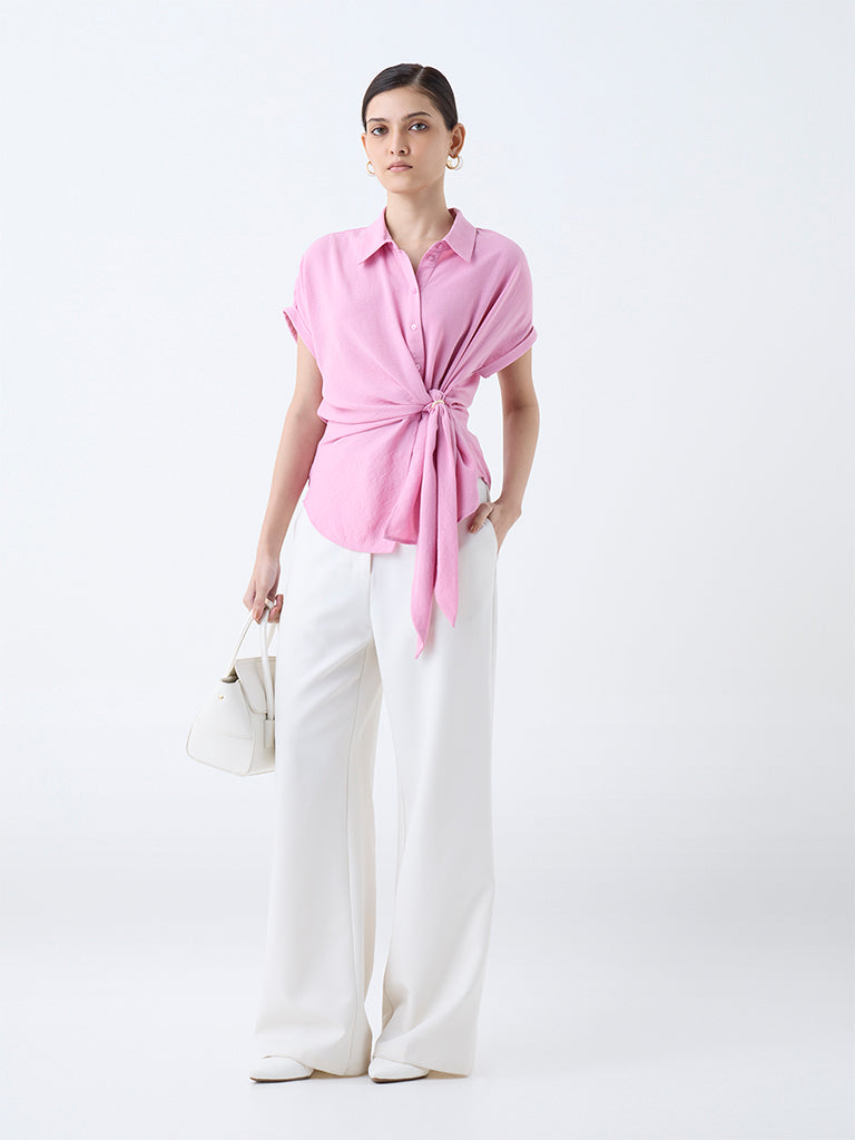 Be the first to review “Wardrobe Pink Knot-Detailed Blouse”