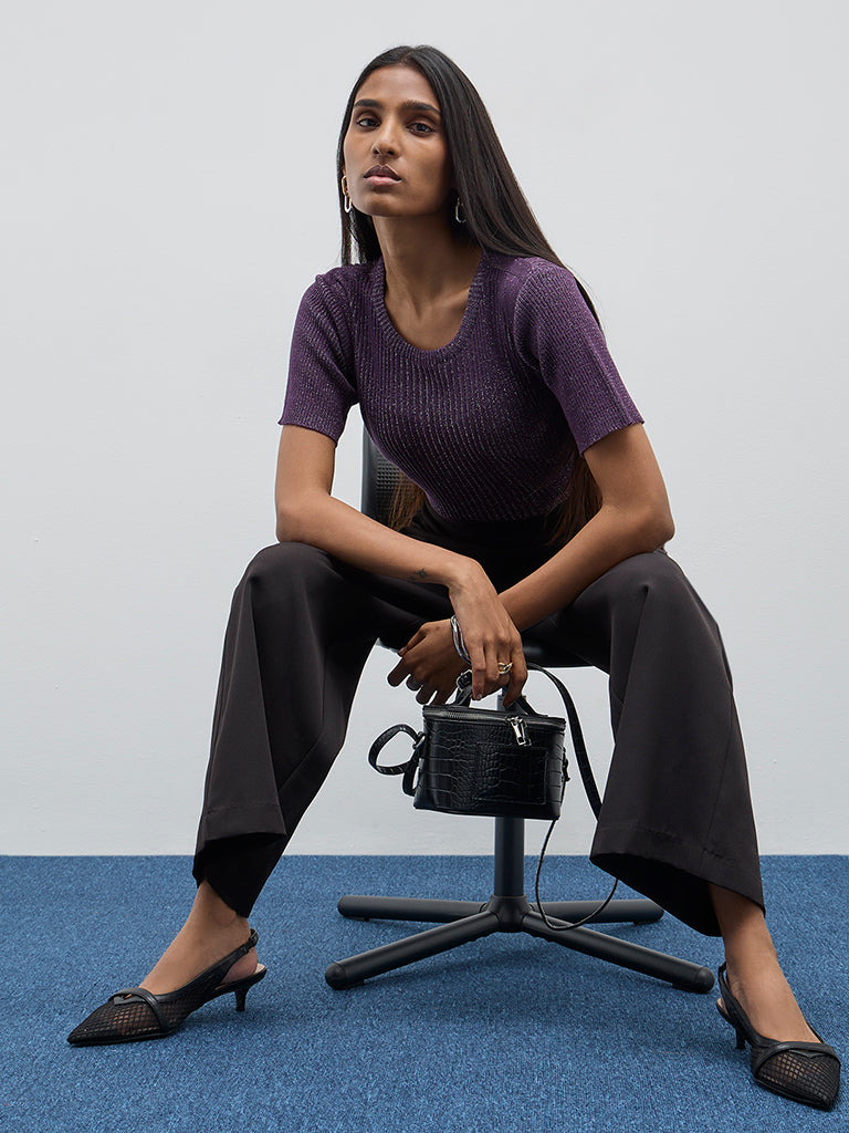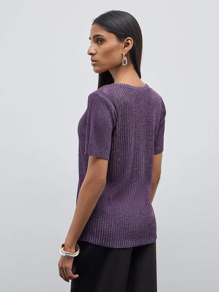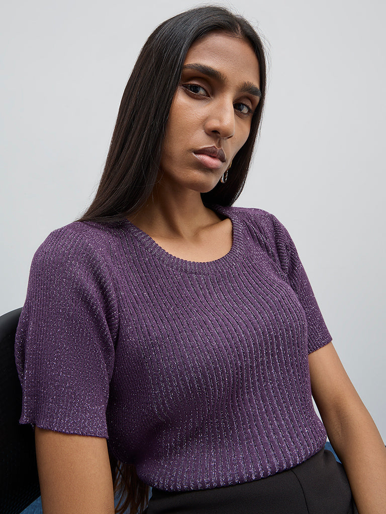 Be the first to review “Wardrobe Purple Ribbed Glitter Top”