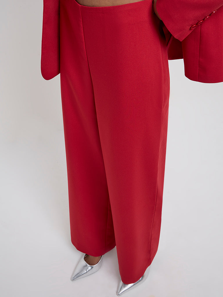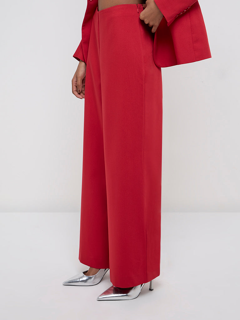Wardrobe Red Wide-Leg High-Rise Trousers
