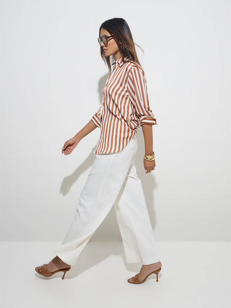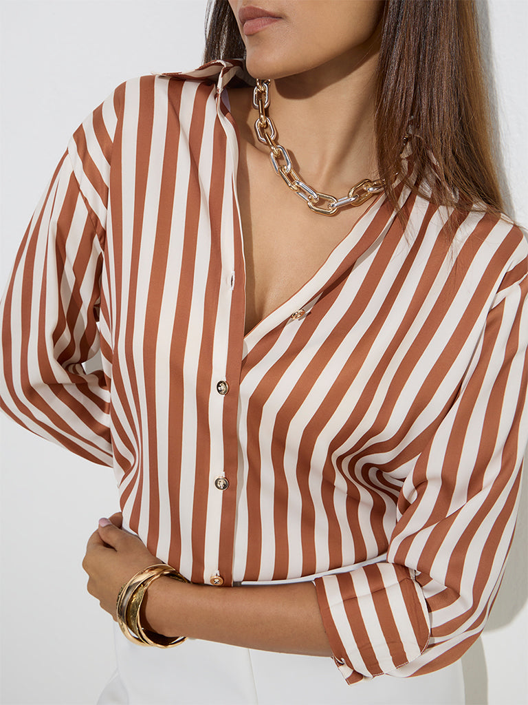 Wardrobe Rust Stripe Printed Shirt