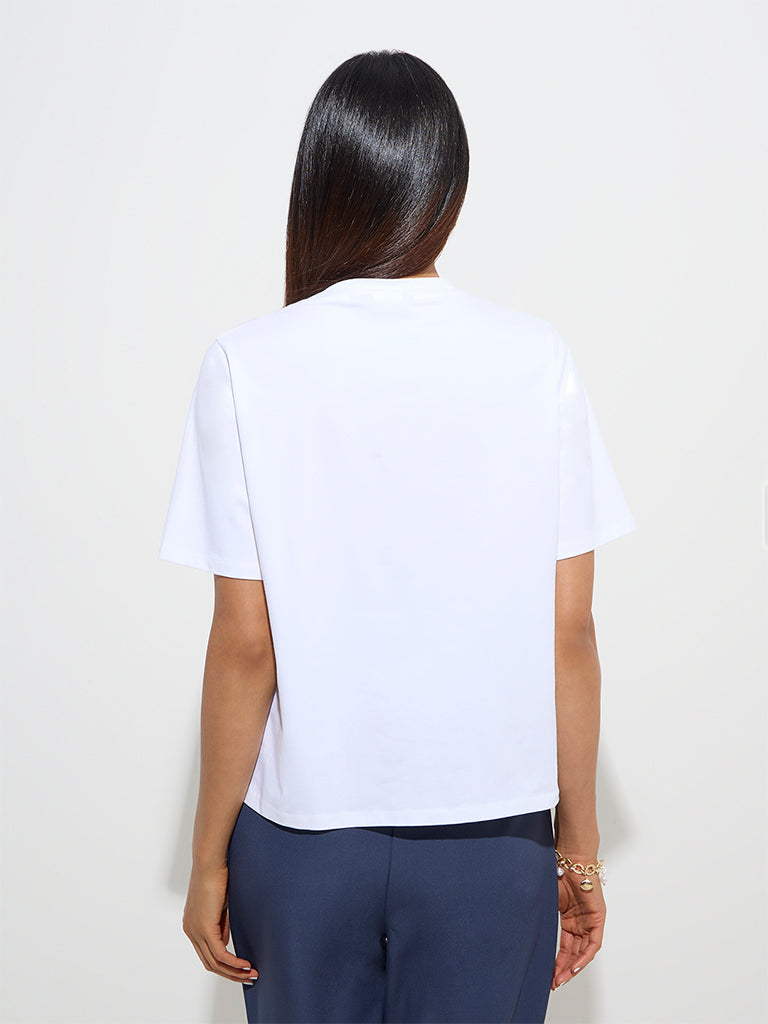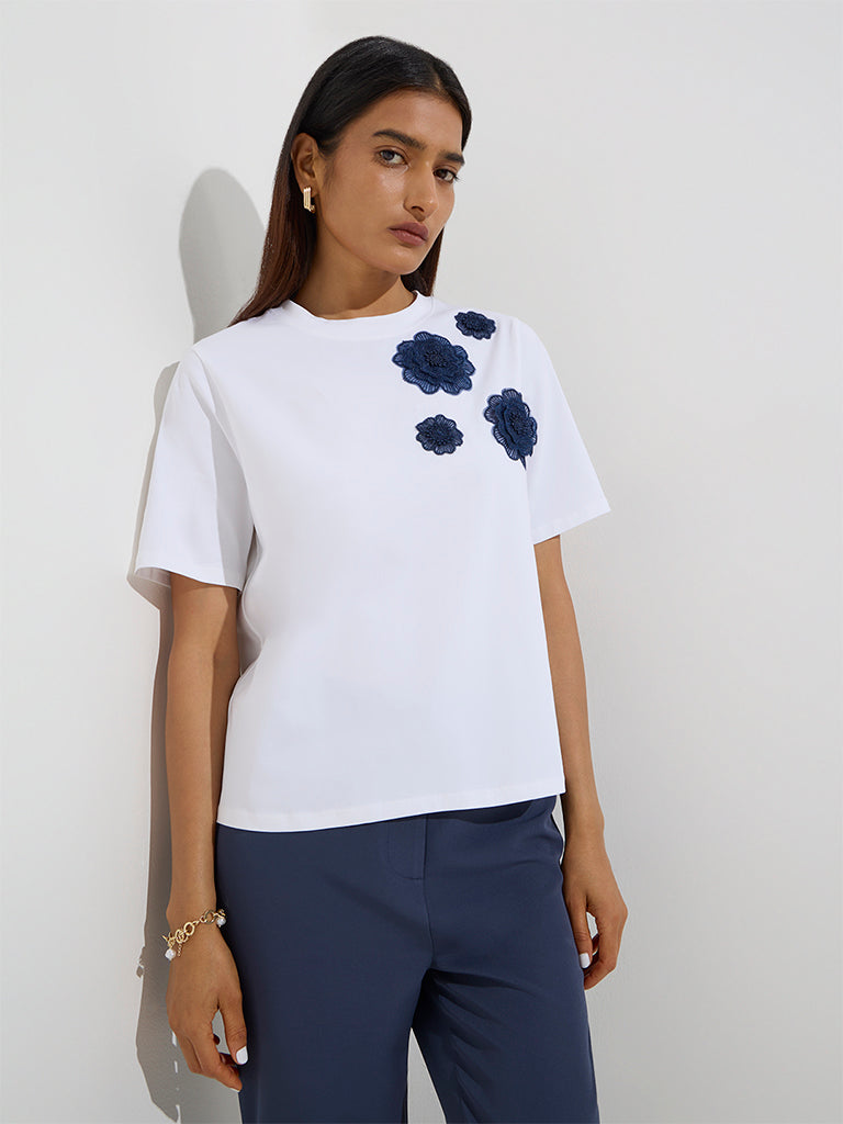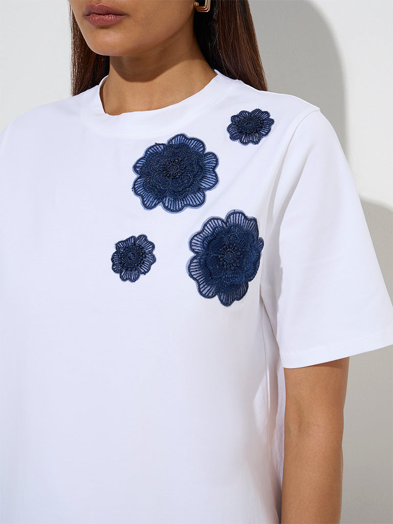 Wardrobe White Floral Detailed Cotton T-Shirt