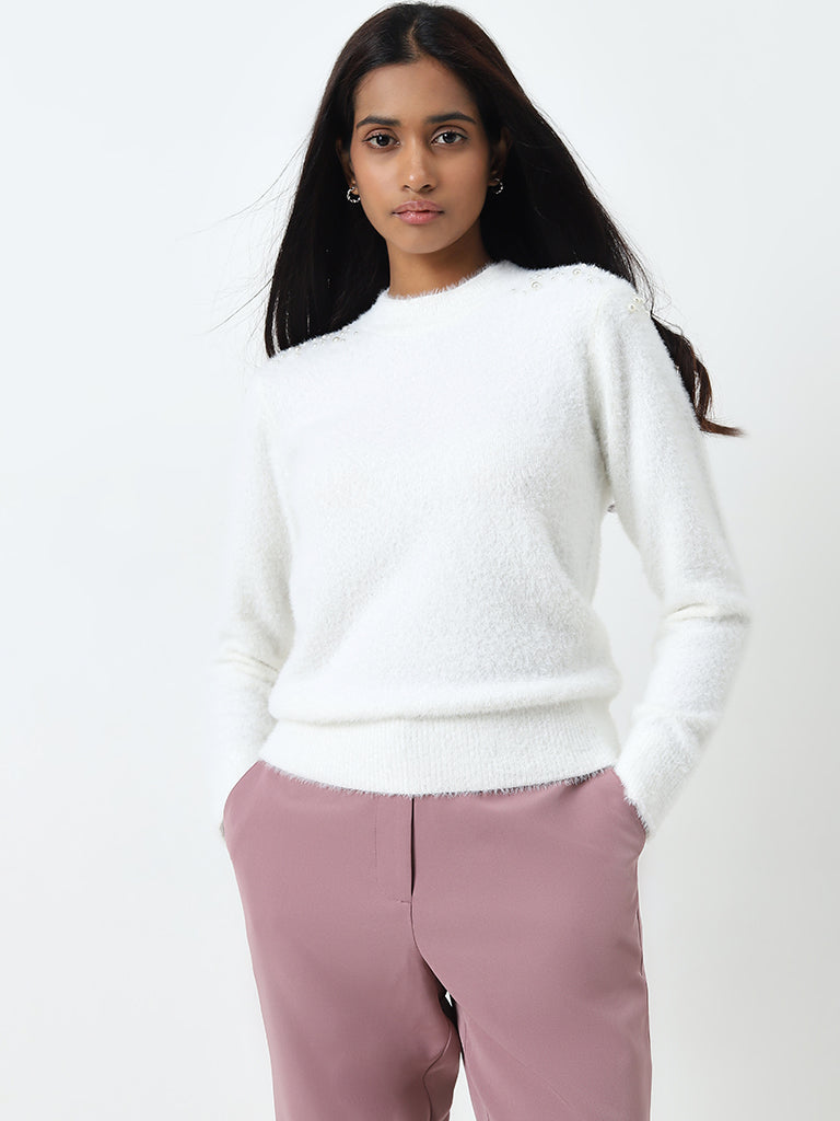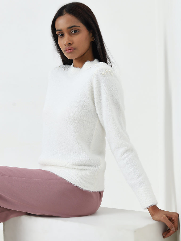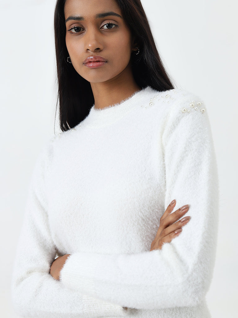 Wardrobe White Pearl Embellished Sweater