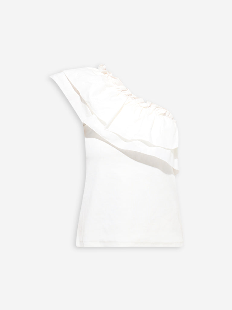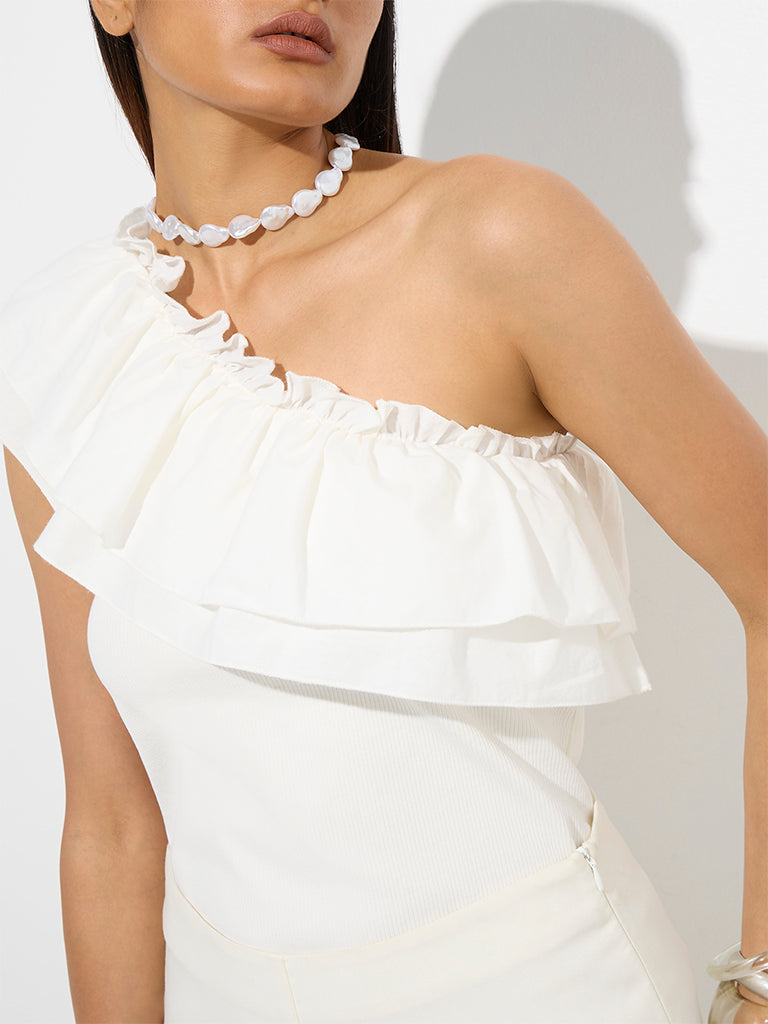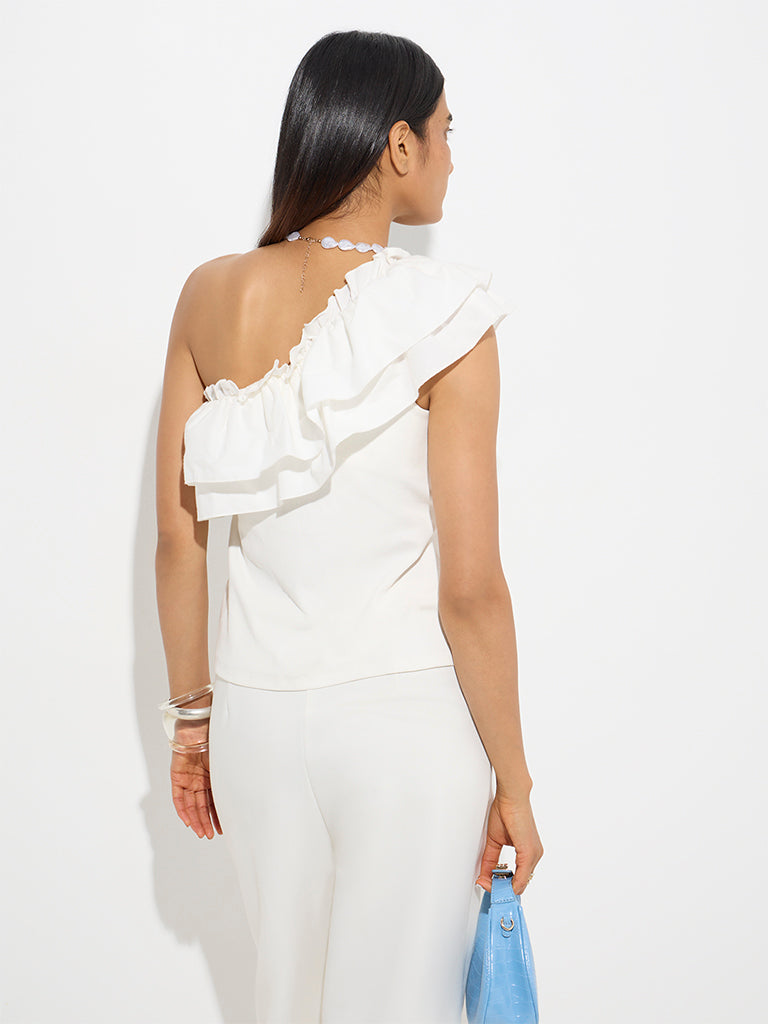 Wardrobe White Ruffle One Shoulder Cotton-Blend Top