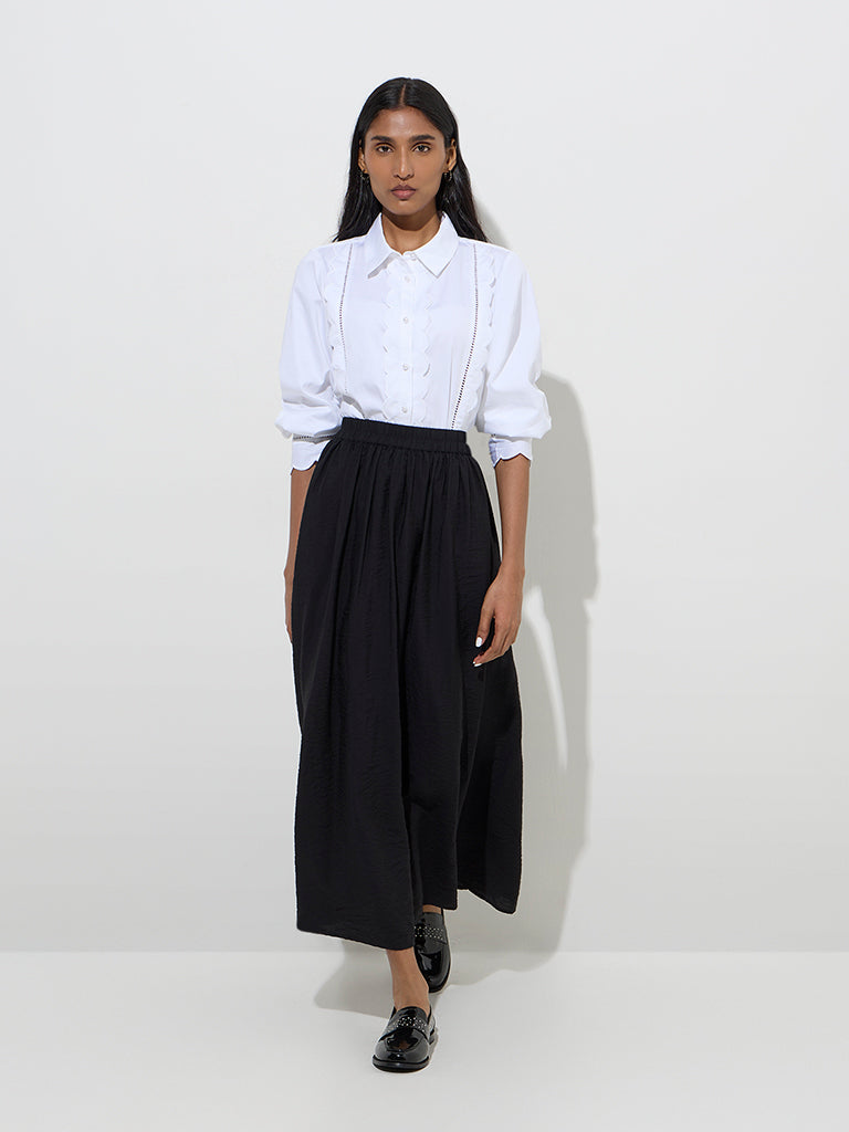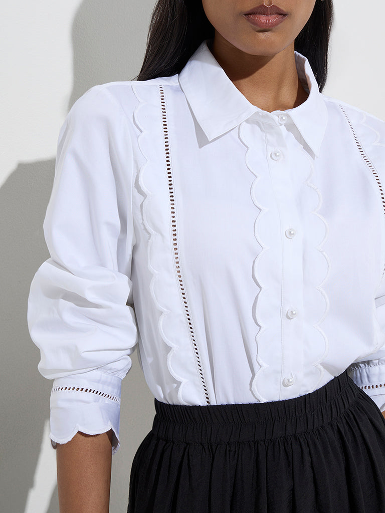 Wardrobe White Scallop-Detailed Cotton Shirt