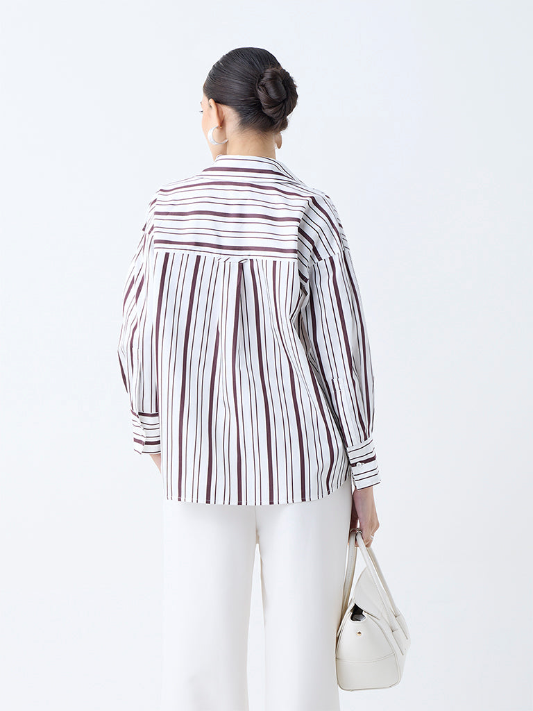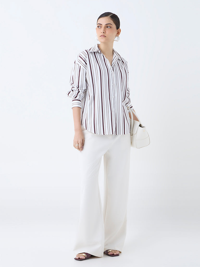 Wardrobe White Stripe Printed Cotton Shirt