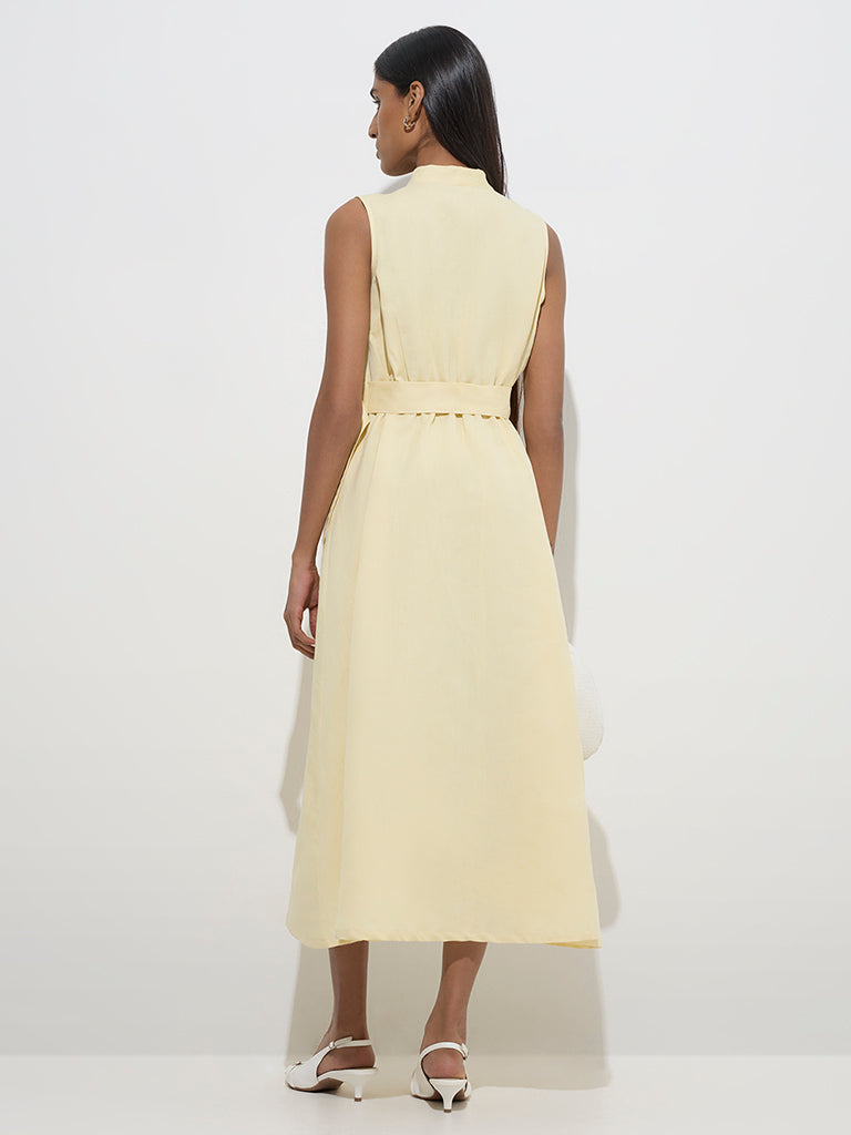 Wardrobe Yellow Solid A-Line Dress with Belt