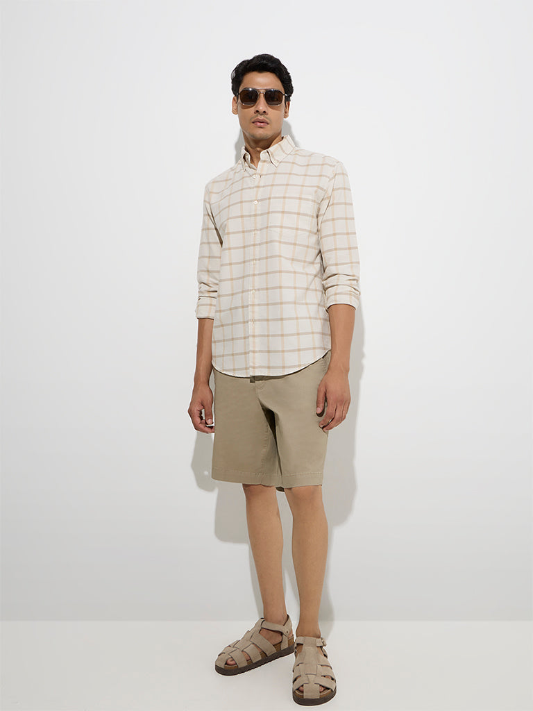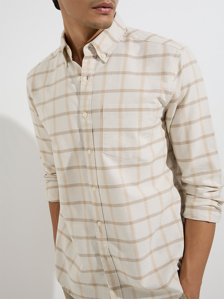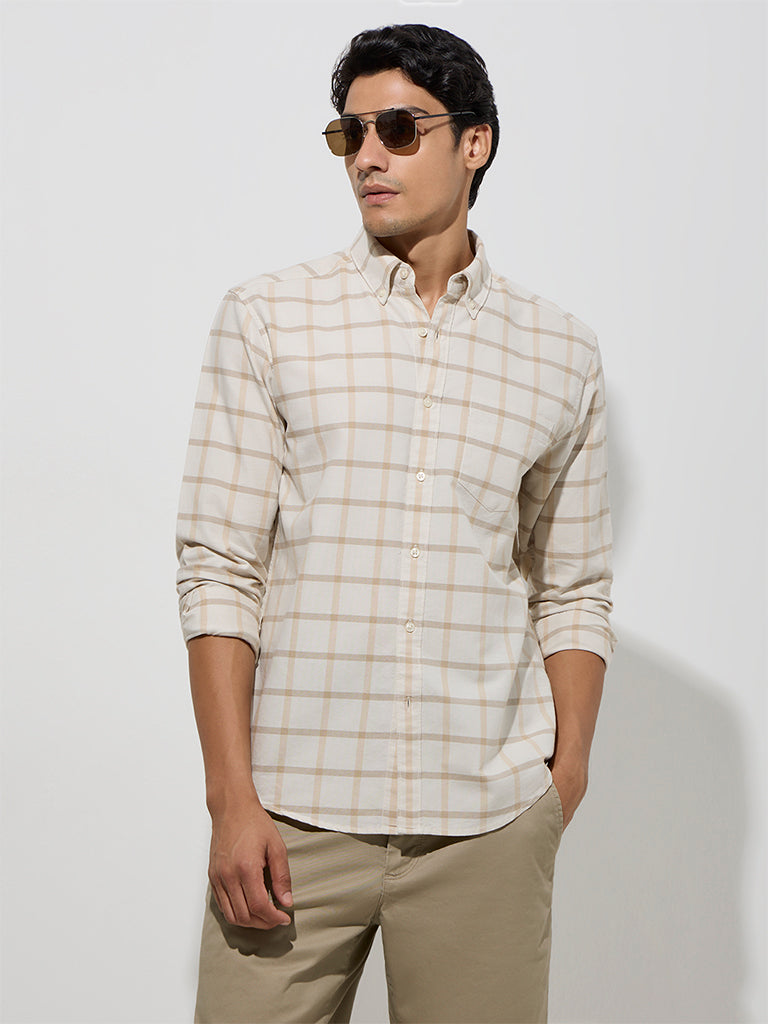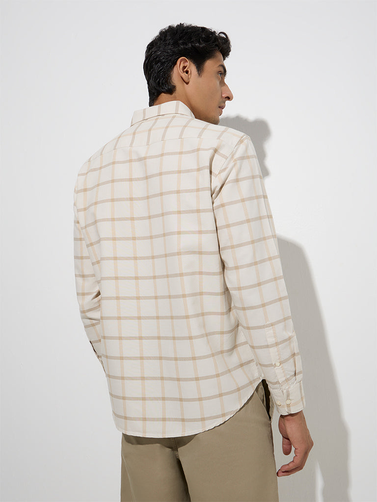 WES Casuals Beige Checks Design Relaxed-Fit Cotton Shirt