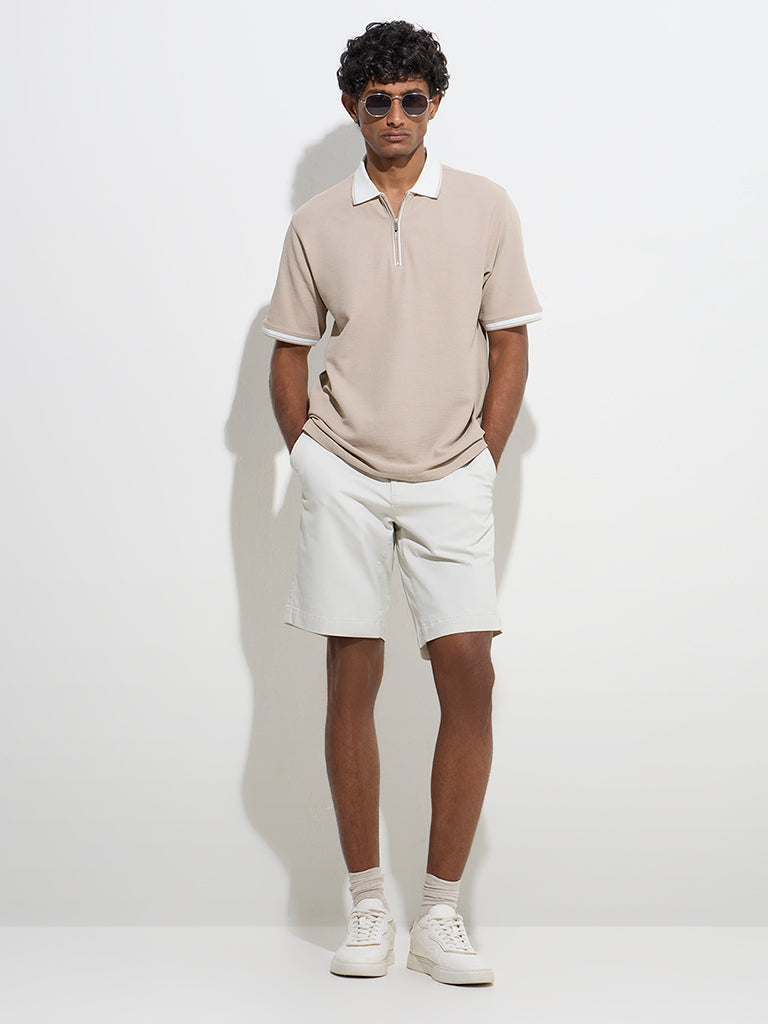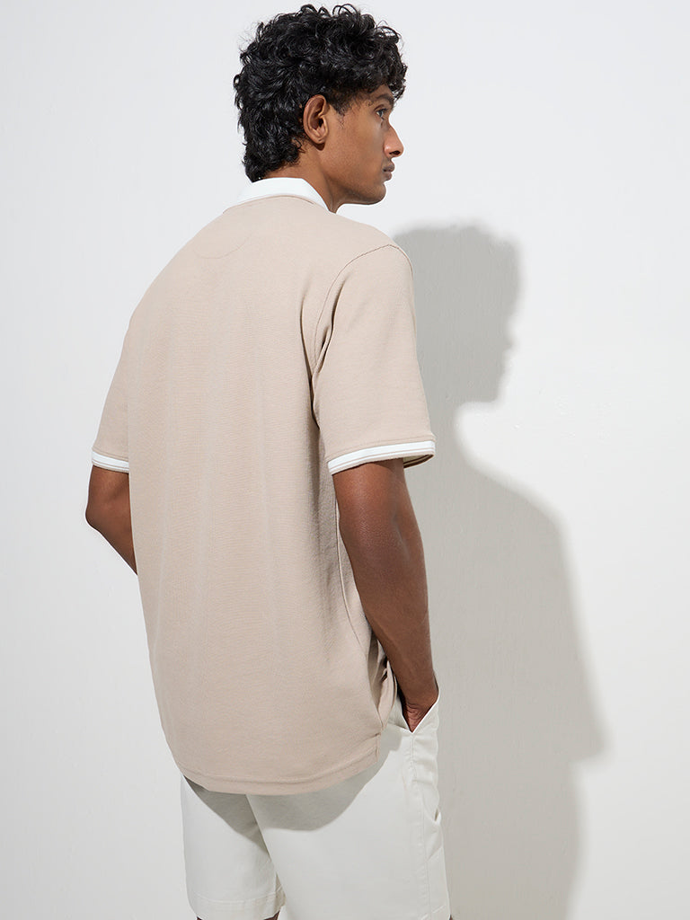 WES Casuals Beige Quarter Zip Polo T-Shirt