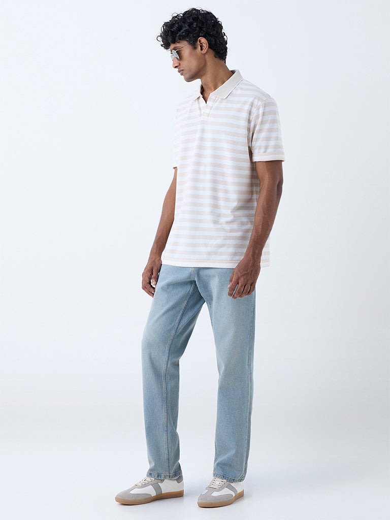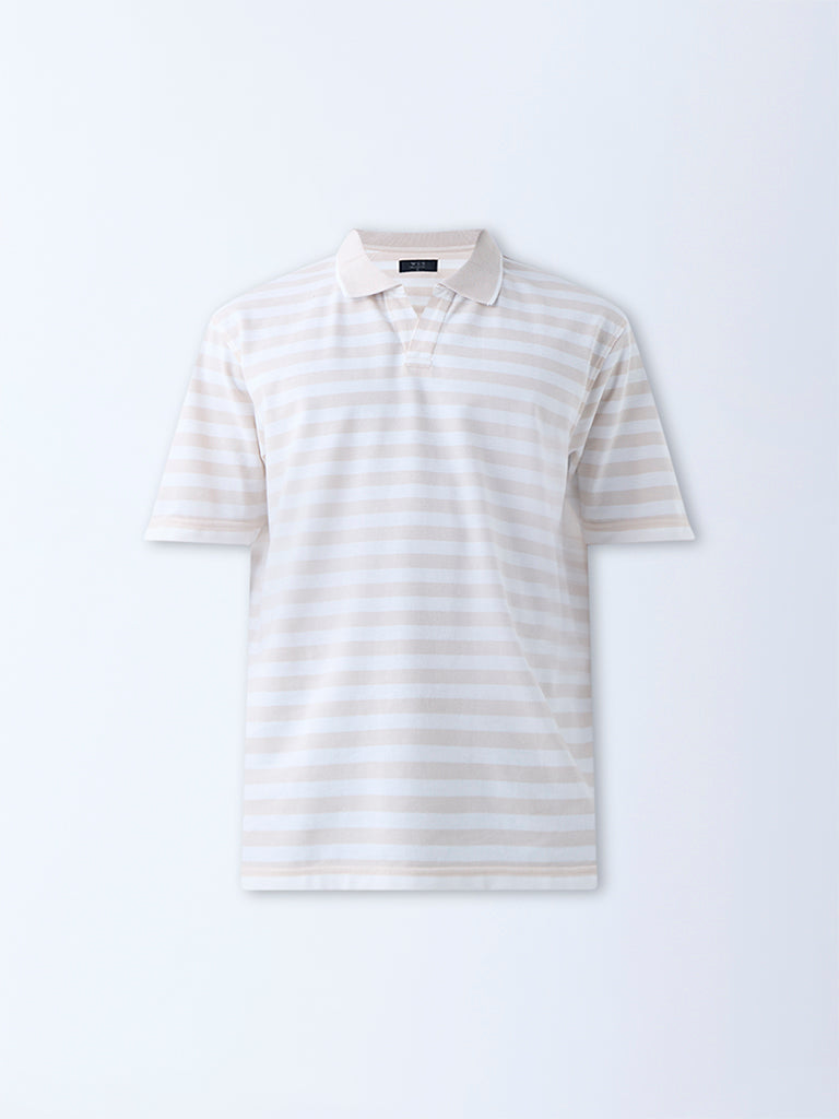 WES Casuals Beige Relaxed-Fit Cotton-Blend Polo T-Shirt